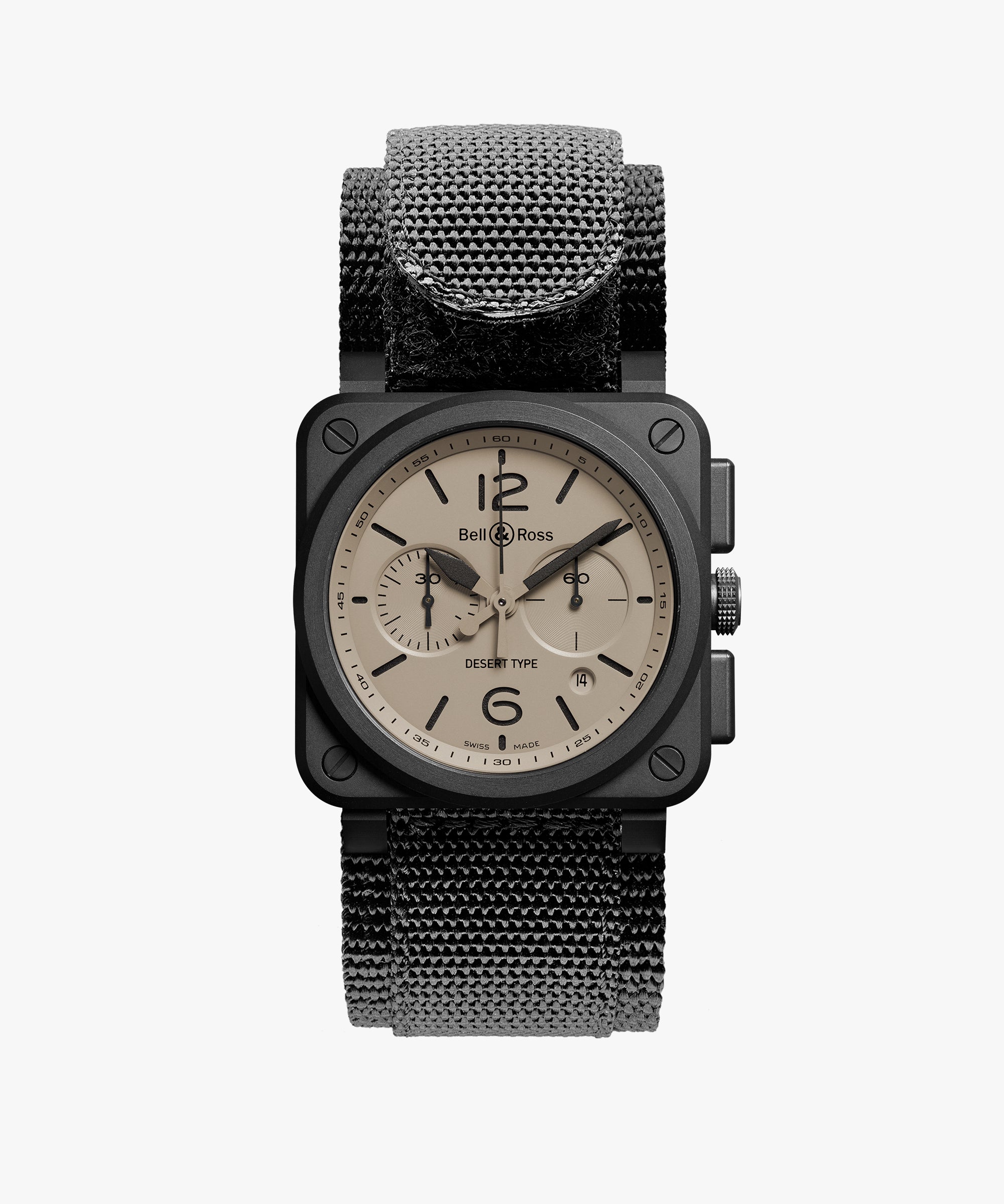 Cadran : Deux plaques superposées. Plaque supérieure beige, découpée à l’emplacement des chiffres et index pour laisser apparaître le revêtement photoluminescent noir qui recouvre la plaque inférieure.