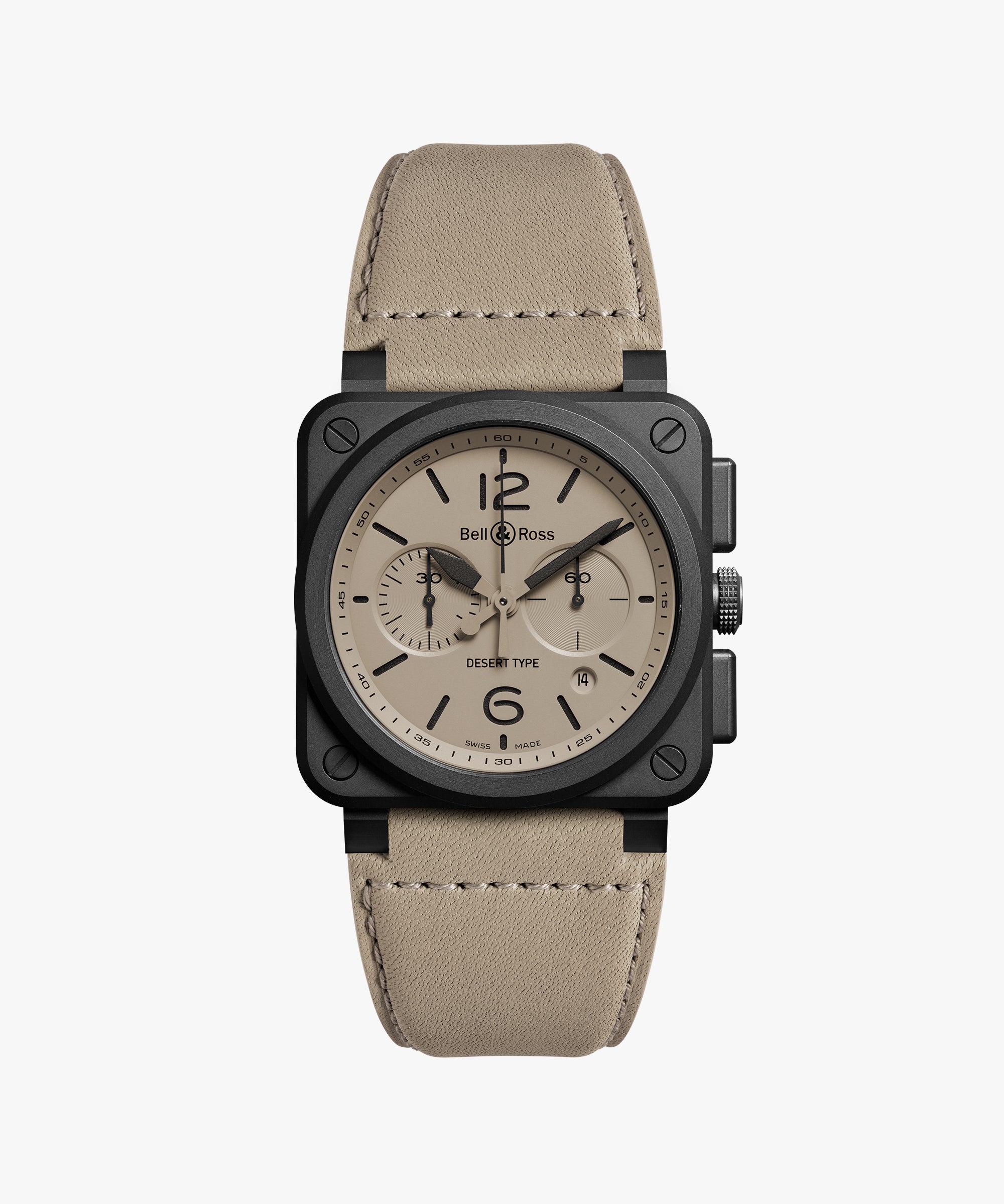 Bracelet : Cuir de veau de couleur beige et toile synthétique ultra-résistante noire.