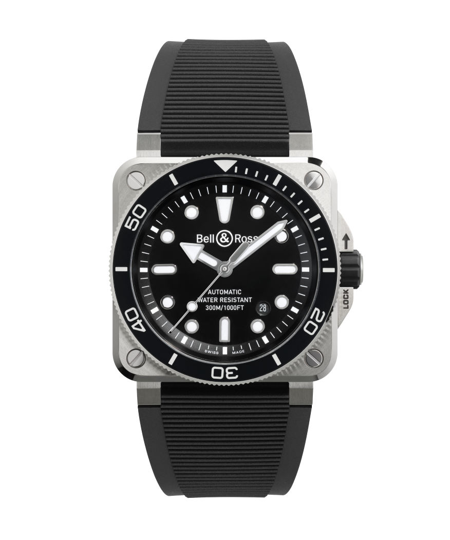 Die Bell & Ross BR-03 Diver, die erste quadratische Taucheruhr, erfüllt die internationalen Standards für Taucheruhren. Im Jahr 2024, zu ihrem siebten Jubiläum, wurde das Design modernisiert und das Uhrwerk verfeinert.