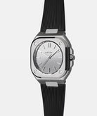 Armband : Schwarzer Kautschuk oder Stahl, poliert und satiniert.