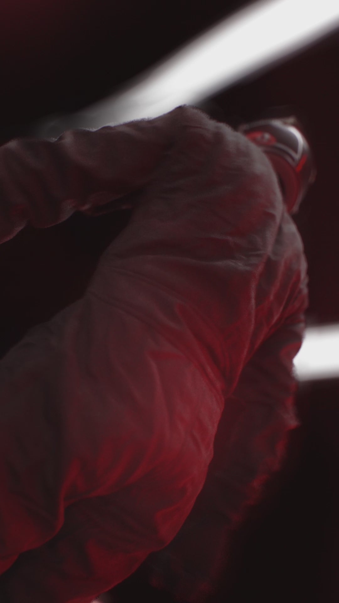 - Bracelet détails : Schwarzes und rotes Kalbsleder sowie extrem widerstandsfähiges schwarzes Synthetikgewebe.