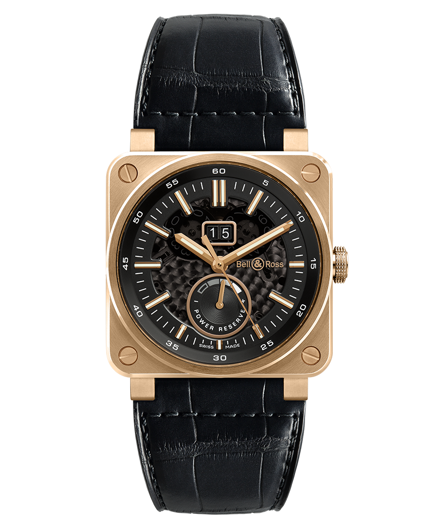 Funktionen : Stunden, Minuten, Sekunden. Große Datumsanzeige bei 12 Uhr. Gangreserveanzeige bei 6 Uhr.