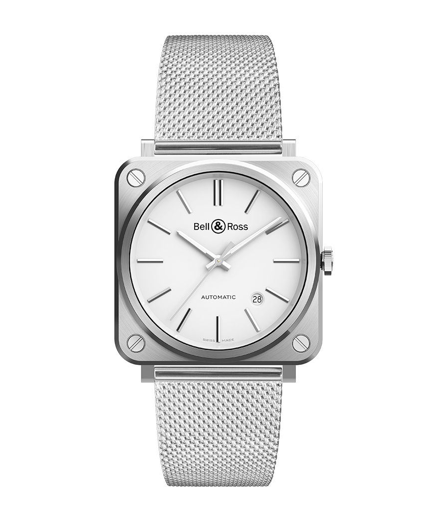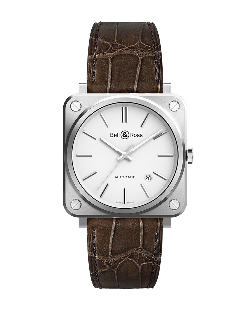 Zifferblatt : Weiß. Aufgesetzte Metallindizes. Skelettierte Stunden- und Minutenzeiger aus Metall mit Super-LumiNova®-Füllung.
