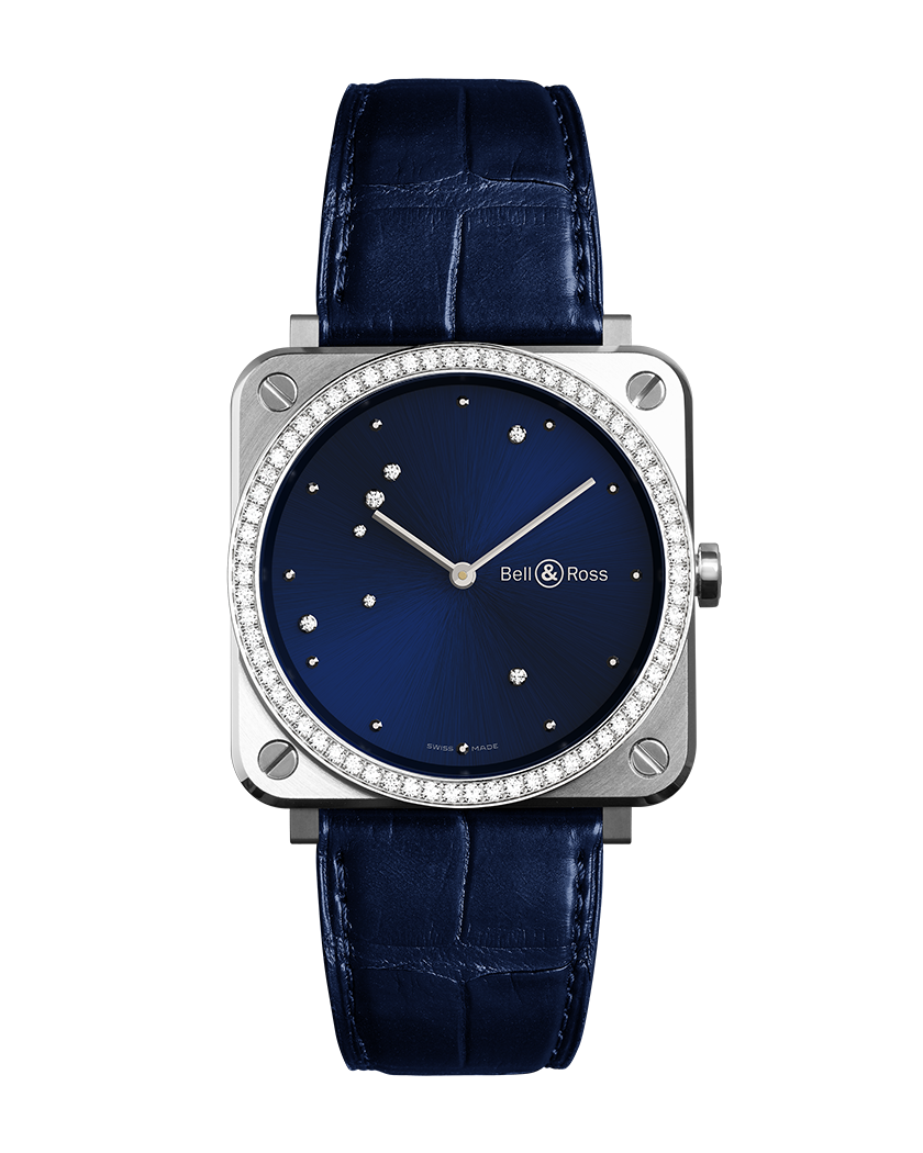 Zifferblatt : Mitternachtsblau. Stundenmarkierungen aus appliziertem Metall. Das Sternbild Adler, dargestellt durch 7 Diamanten.