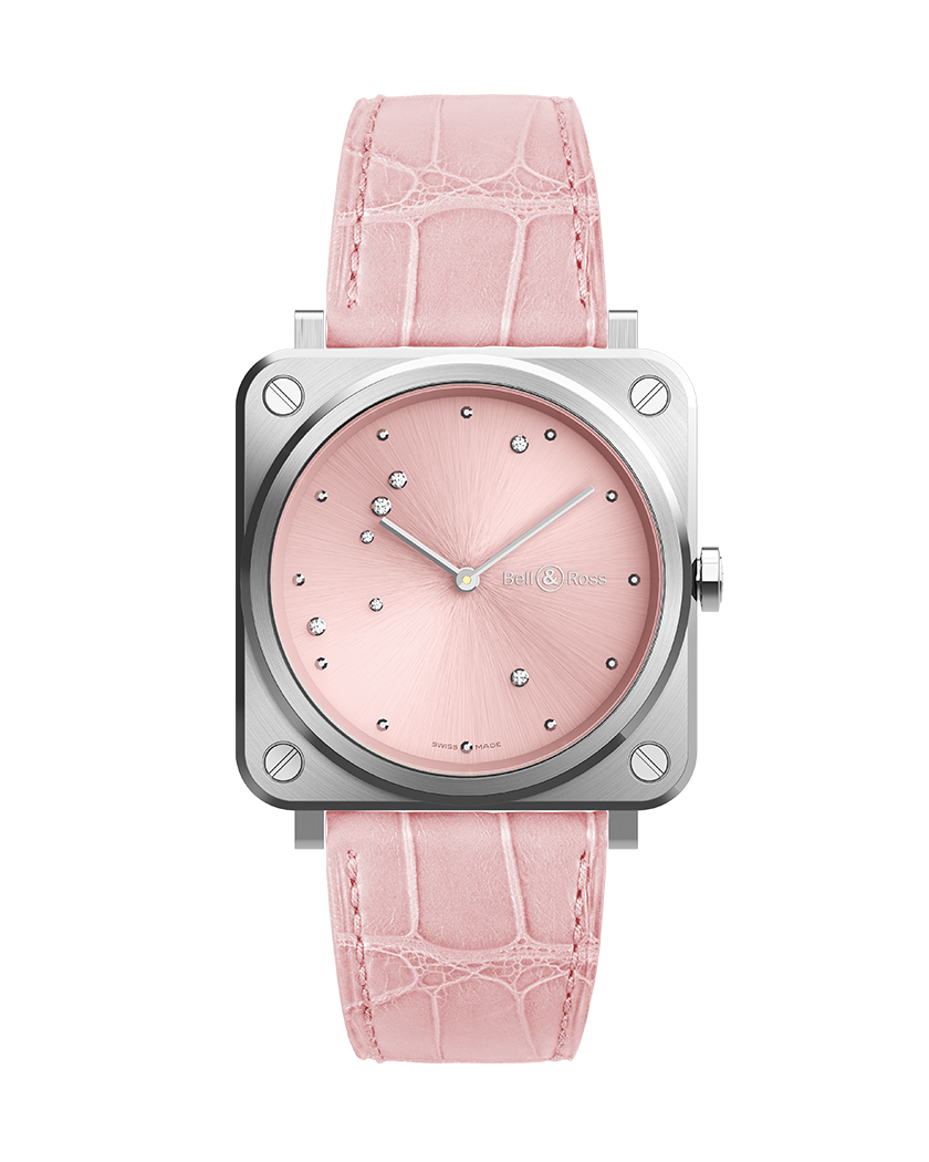 Armband : Armband aus rosafarbenem Alligatorleder oder Milanaise-Armband.