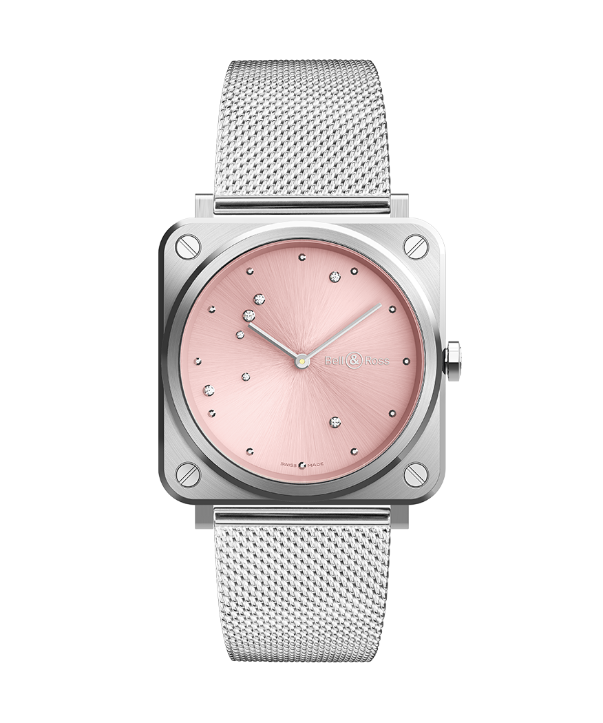 Zifferblatt : Sonnenstrahlenförmige Rose. Stundenmarkierungen aus appliziertem Metall. Das Sternbild Adler wird durch 7 Diamanten dargestellt.