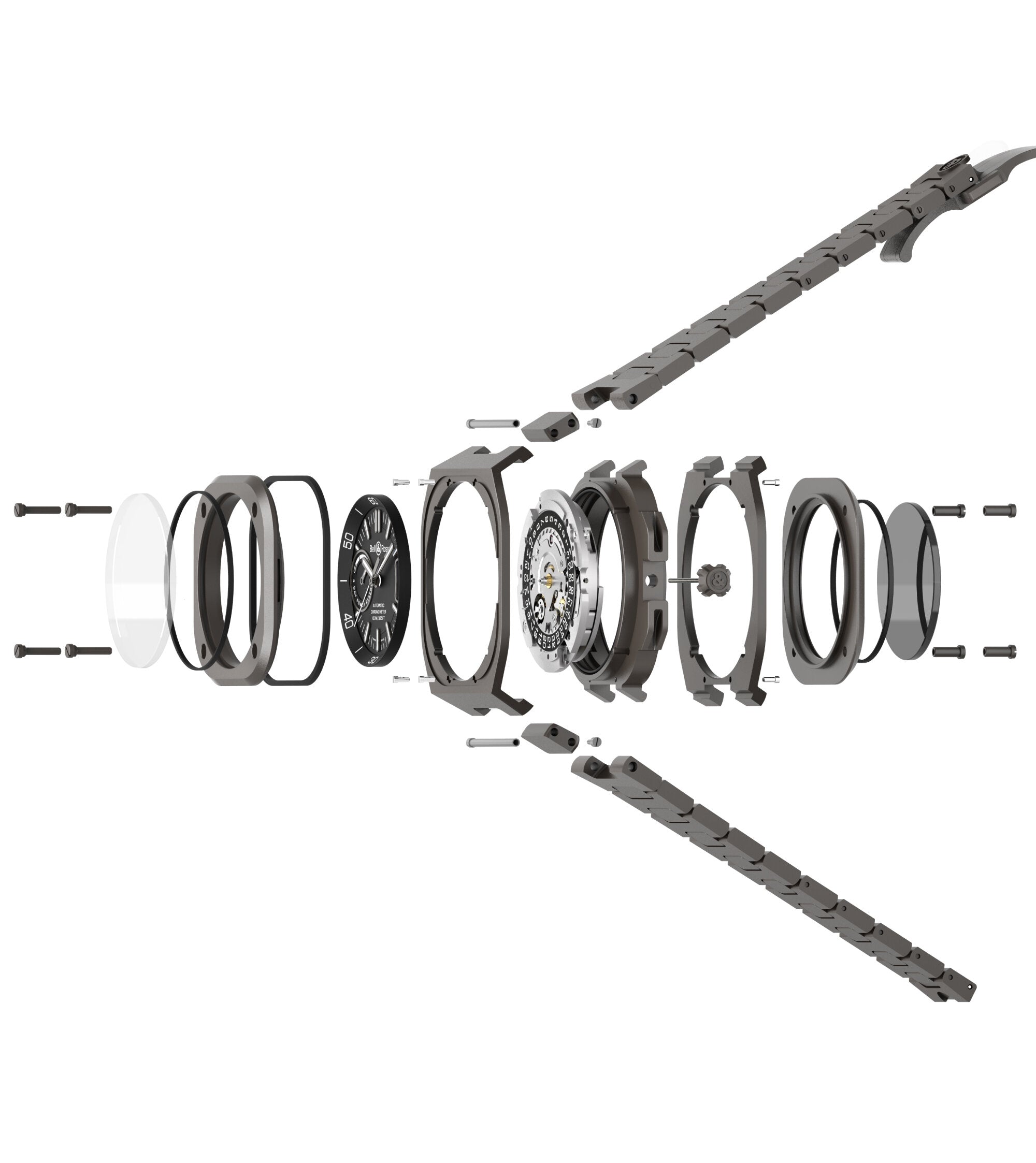 Equipped with a manufacture movement, the BR-X5 positions itself as a superlative BR 05. Its multi-component case favors a refined and radical architecture, combining lightness and strength.