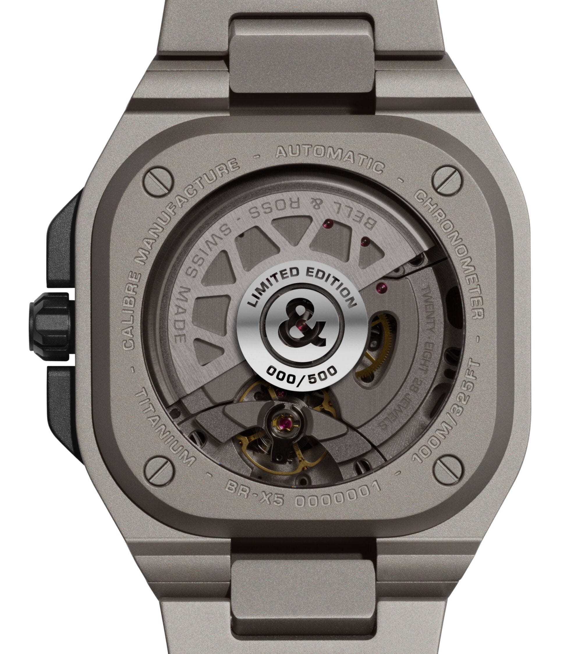 The BR-X5 is made of high-tech materials that combine strength and lightness. Its manufactured movement takes it to new heights of precision.