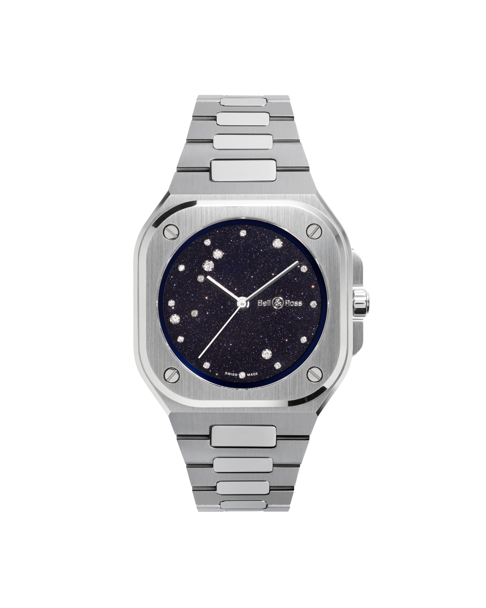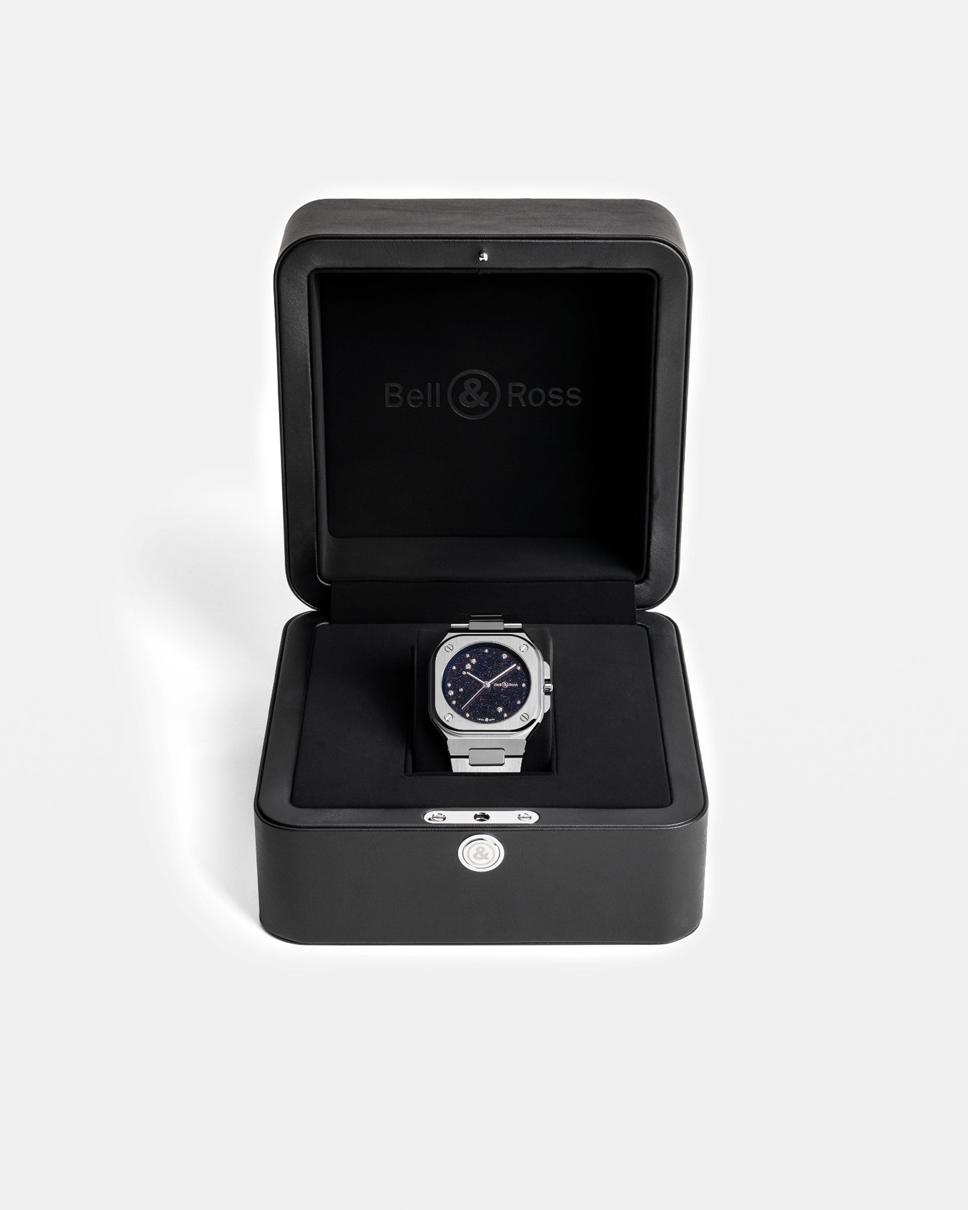 The lines of the case combine the circle and square, the basic geometric shapes which underscore the identity of the Bell & Ross brand. This urban collection comes in two variations: the BR 05, which goes beyond the rigour of the square and transcends the perfection of the circle to assert its own identity, and the BR-X5, equipped with a Manufacture movement, which is the ultimate BR 05. Its multi-component case boasts a refined yet radical architecture, combining lightness and strength.