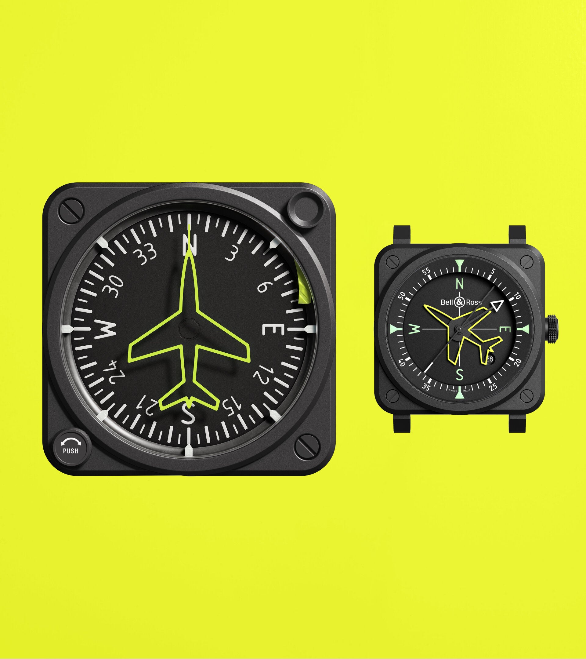 Designer of instrument watches, Bell & Ross appropriates the most symbolic dial of an aircraft cockpit with the BR-03 Gyrocompass.