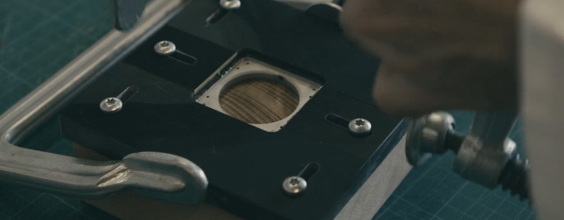 Case : Width 45 mm. 18 ct rose gold and precious wood. Toggle pusher. Anti-reflective sapphire crystal case back.