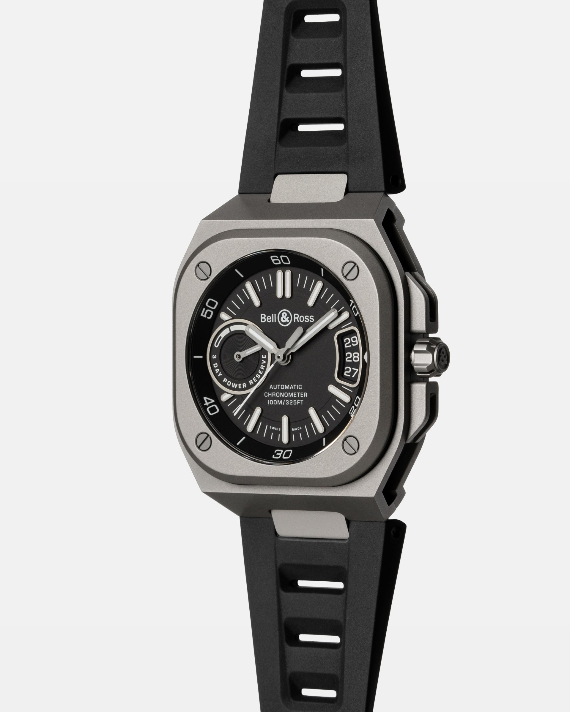 The BR-X5 is made of high-tech materials that combine strength and lightness. Its manufactured movement takes it to new heights of precision.