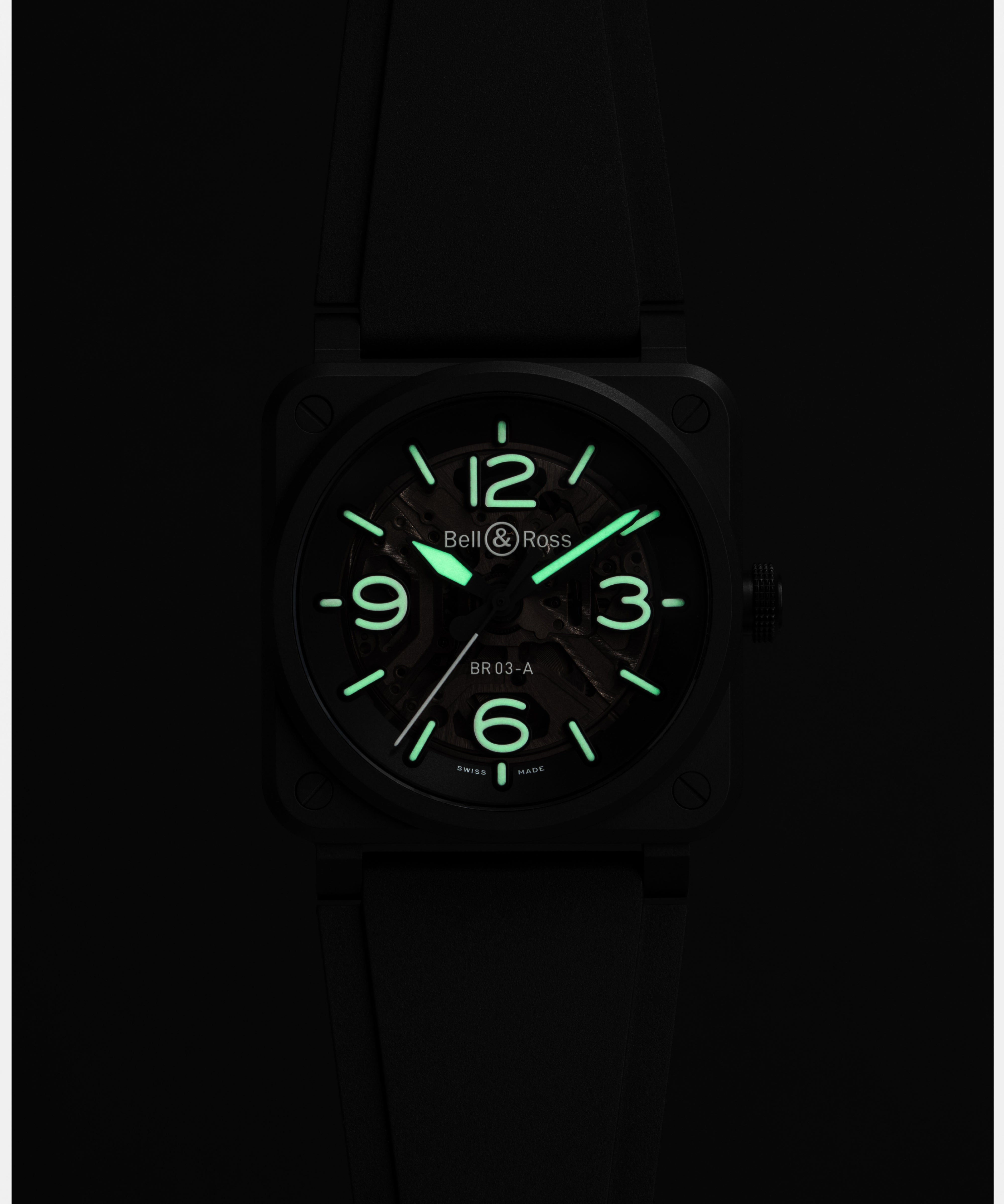 With its powerful design and subtle details, the new BR-03 Skeleton showcases all of Bell & Ross' expertise in terms of skeletonisation and luminescence. Every piece becomes a high-tech work of art.