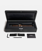 Dial : Sunburst brown. Gold-tone applied numerals and indexes. Skeletonized metal hour and minute hands filled with Super-LumiNova®.