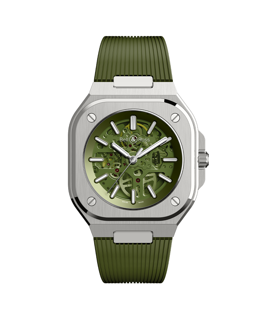 The BR 05 SKELETON collection takes on the challenge of transparency. Reflecting the finest craftsmanship in Haute Horlogerie, the skeleton version of the BR 05 highlights the modern, architectural design of Bell & Ross's latest urban collection.
