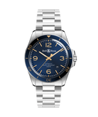 Dial : Sunburst blue. Gold-plated applied numerals and indexes. Skeletonized gold-plated hour and minute hands filled with Super-LumiNova®.