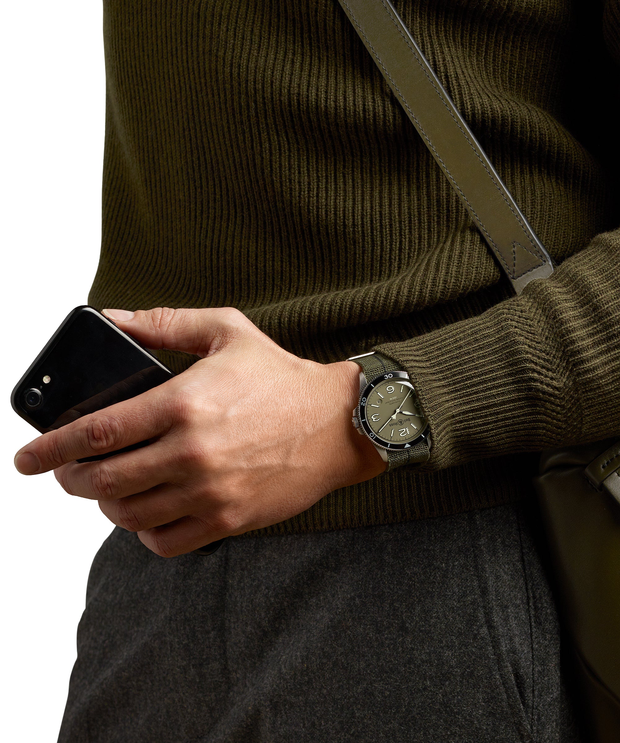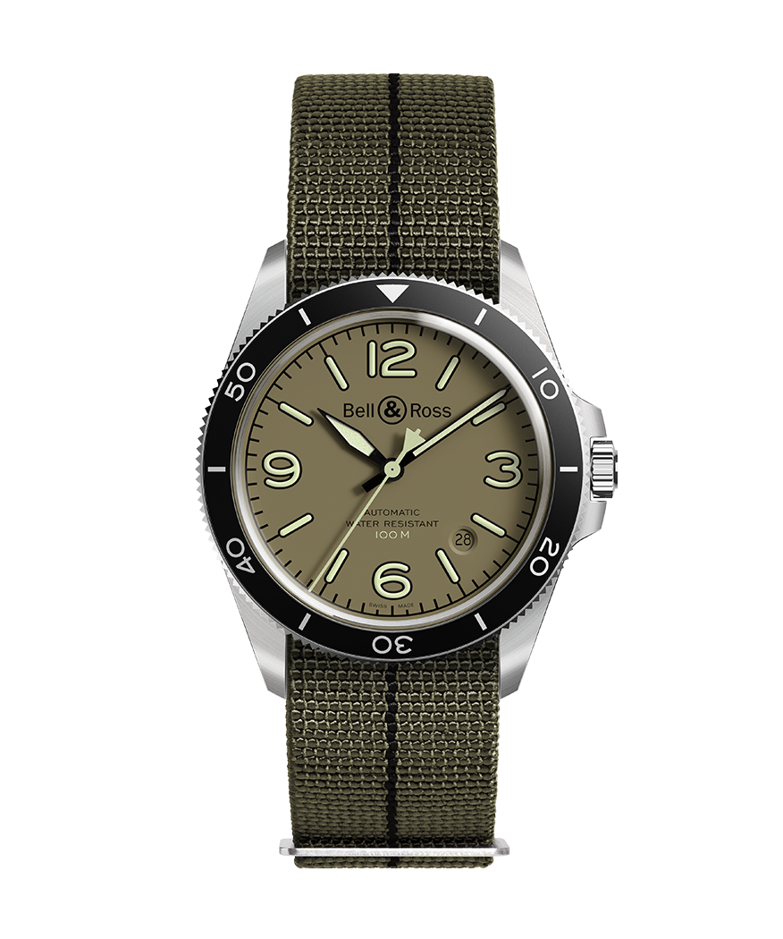 With the motto that the essential never leaves room for the superfluous, the watchmakers and engineers at Bell & Ross have designed this BR V2-92 Military Green, perfectly suited to any use.