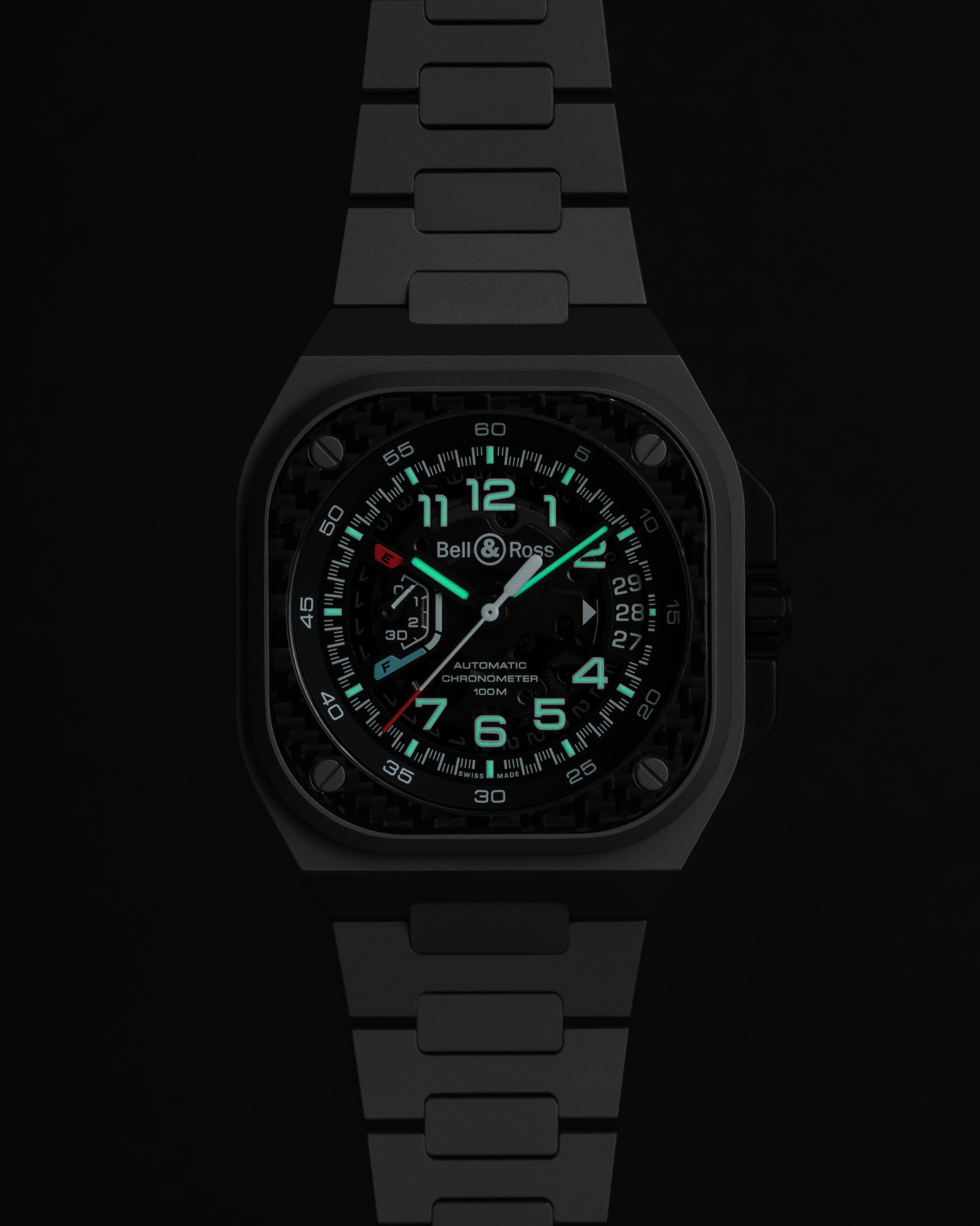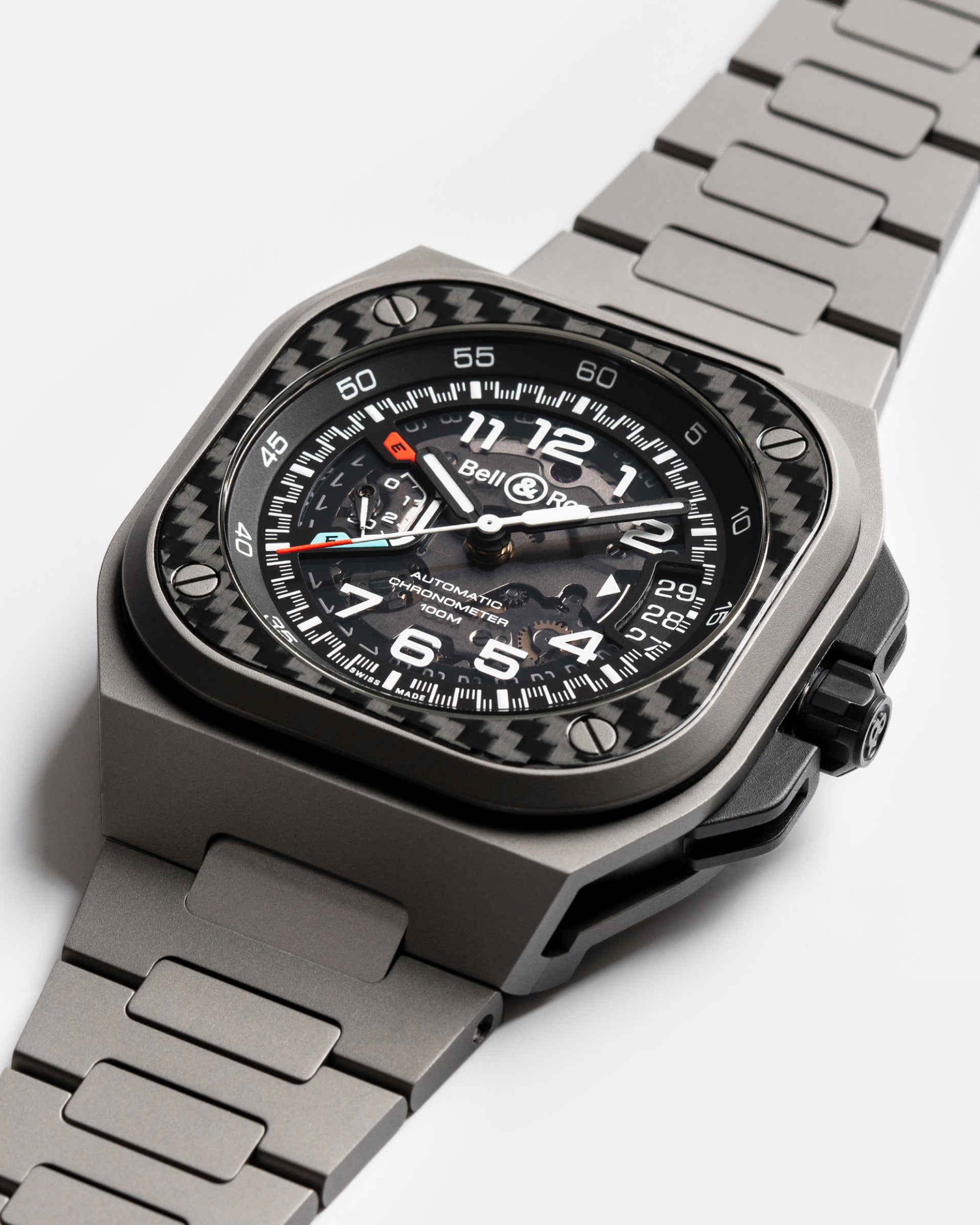 Equipped with a manufacture movement, the BR-X5 positions itself as a superlative BR-05. Its multi-component case favors a refined and radical architecture, combining lightness and strength.