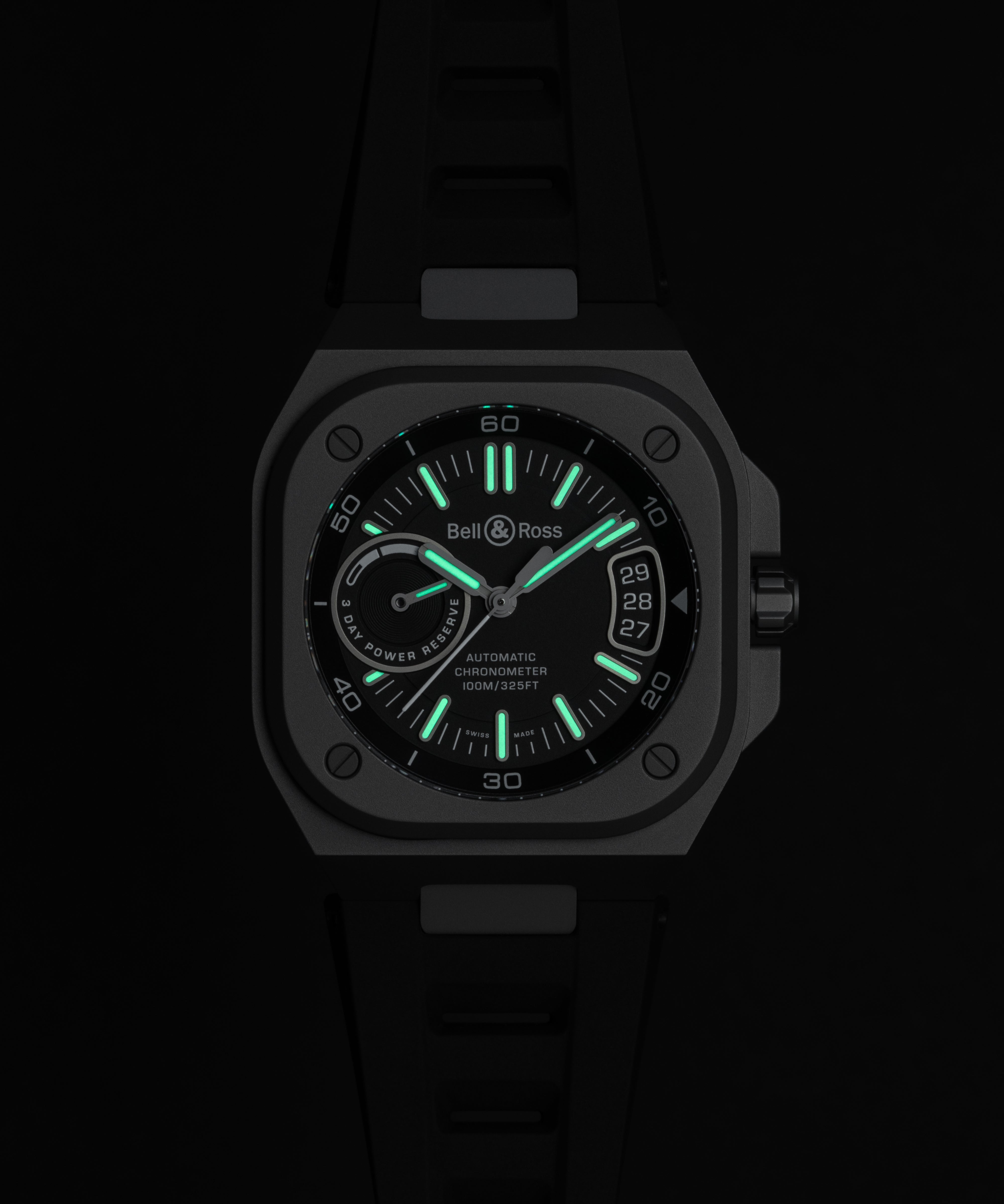 Equipped with a manufacture movement, the BR-X5 positions itself as a superlative BR-05. Its multi-component case favors a refined and radical architecture, combining lightness and strength.