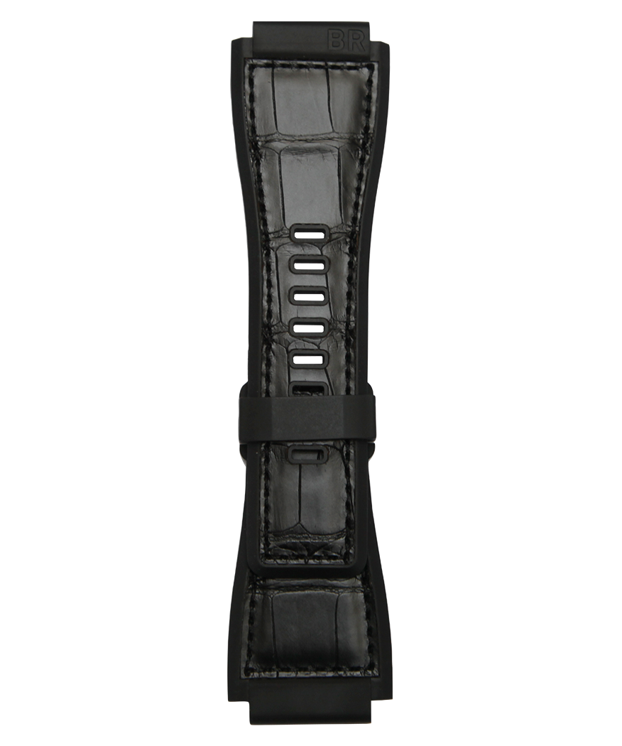 BR-03 - BR-01 - BR-X1 Black bi-material strap in rubber and alligator leather