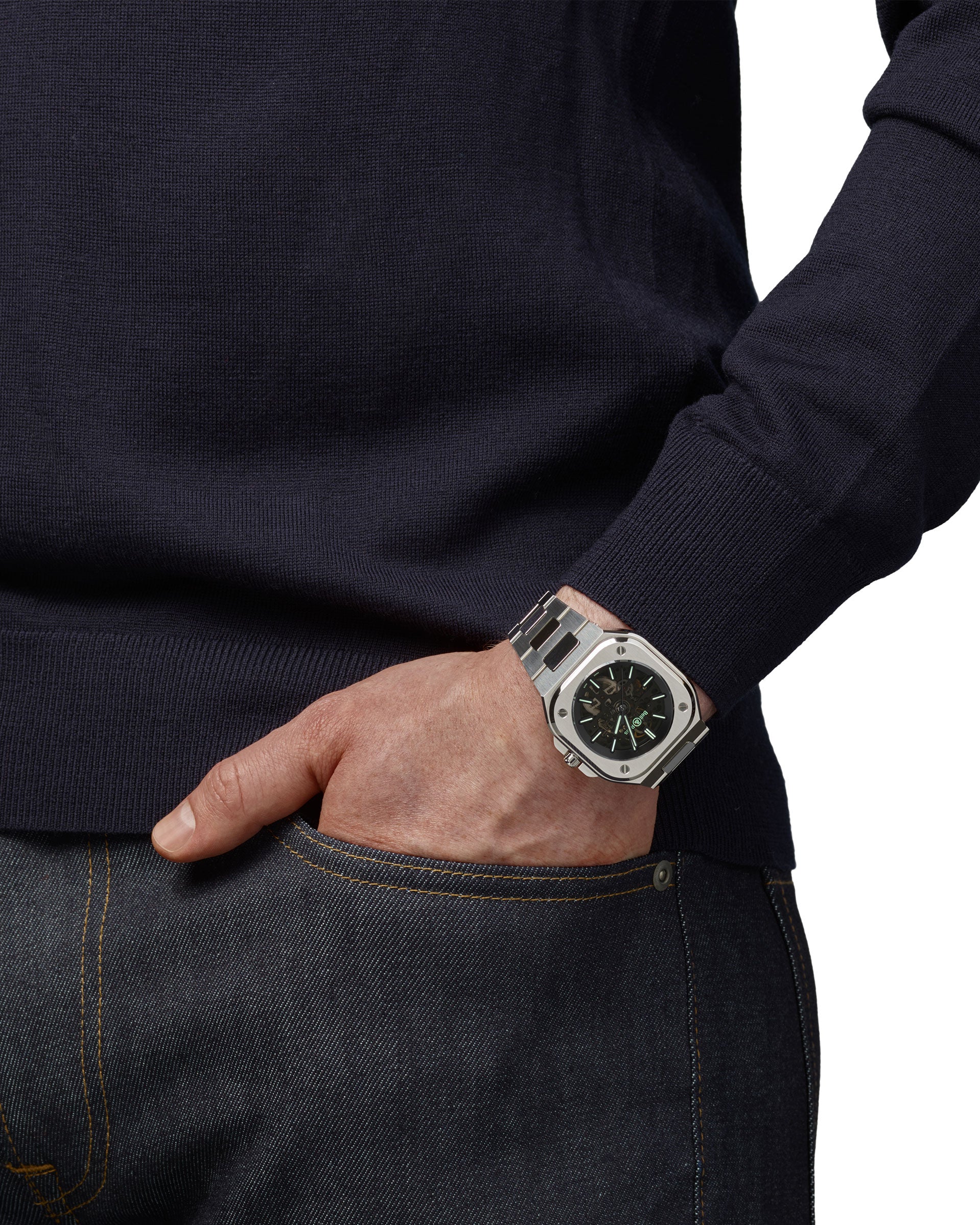 BR-05的整合式設計展現其獨特的個性。Bell & Ross共同創辦人兼創意總監兼Bruno Belamich表示:「錶殼與鍊帶的整合不僅和品牌的基因一致,也為腕錶加入全新的面向,讓第一個鍊節成為錶殼的一部分。這種受到70年代啟發的風格賦予Bell & Ross一種獨特、現代且生動的美感。