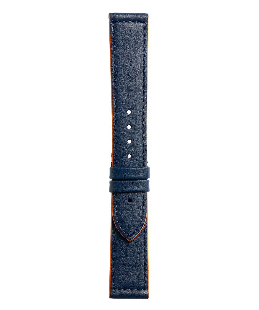 BR V1 Bracelet en cuir de veau de couleur bleue avec passepoil orange