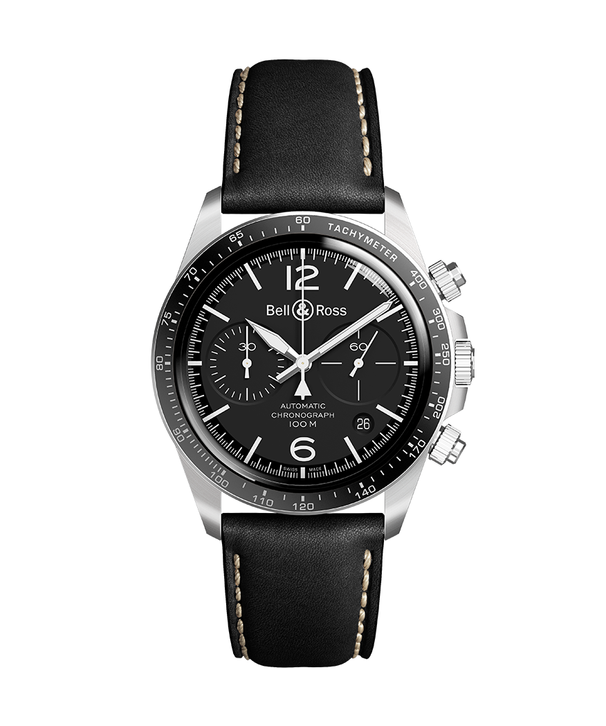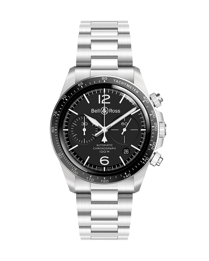 Boîtier : Diamètre 41 mm. Acier poli-satiné. Lunette en acier avec bague en aluminium anodisé noir graduée avec tachymètre. Couronne et poussoirs vissés. Fond saphir.
