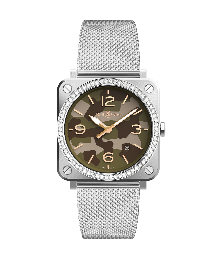 Cassa : Diametro 39 mm. Acciaio lucido-satinato. Lunetta in acciaio con diamanti bianchi (66 pietre per un totale di 0,99 carati).