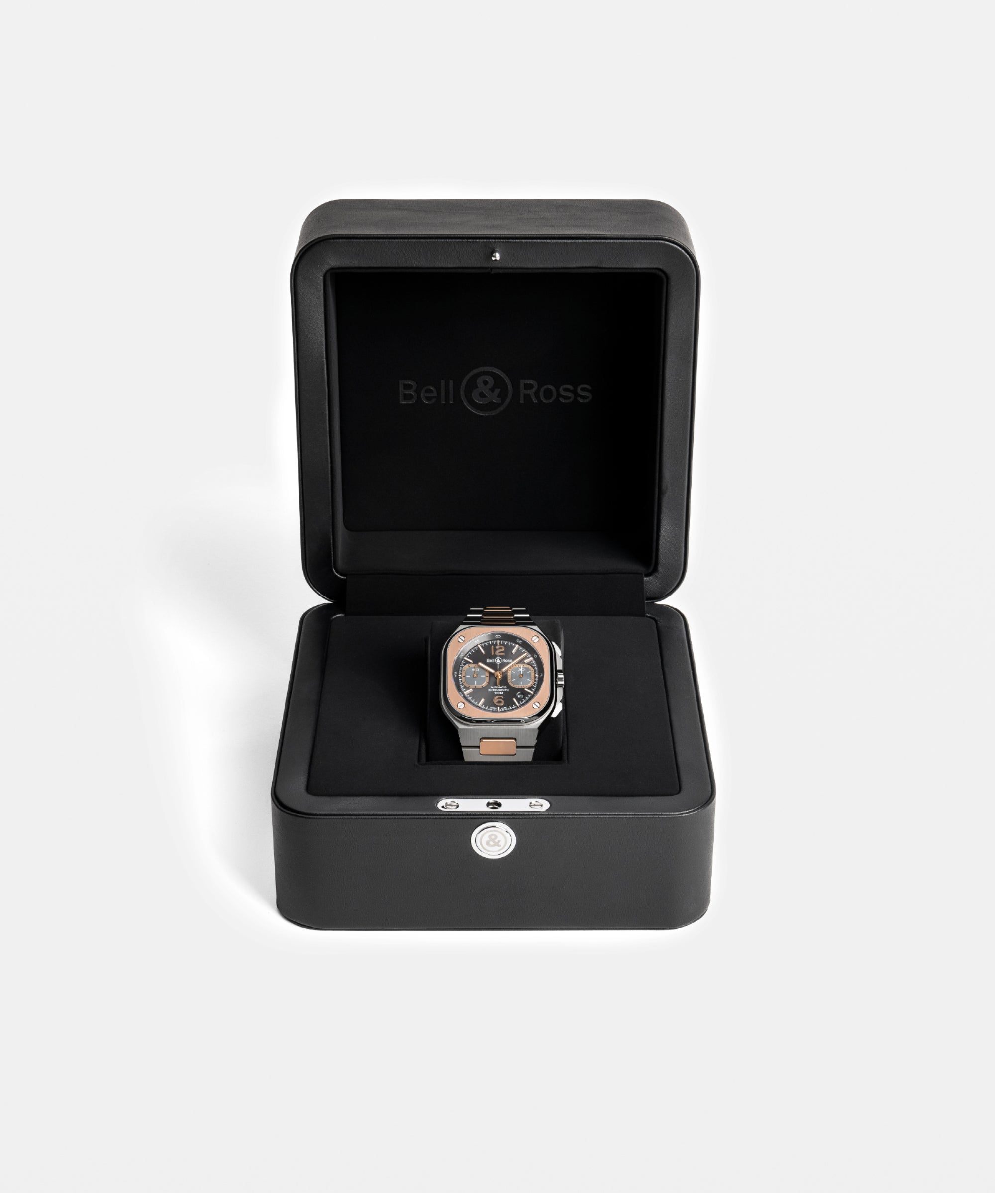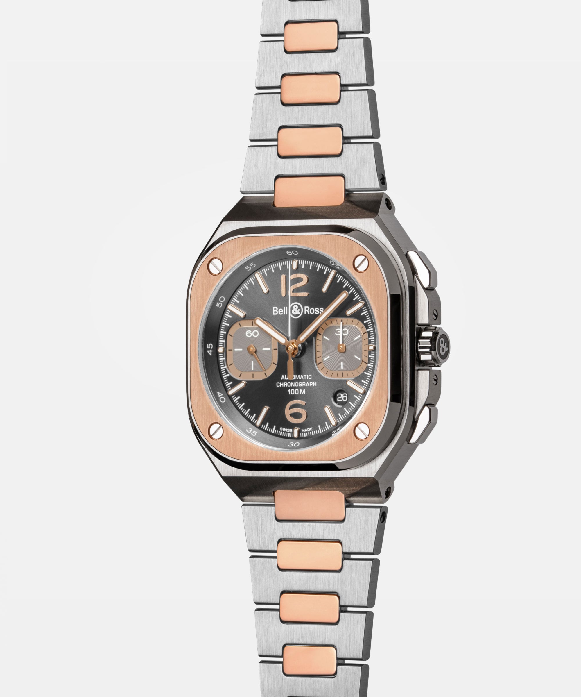 Bell & Ross interpreta lo stile urbano con BR-05 Grey Steel & Gold, un orologio con cassa in acciaio da 42 mm e dettagli in oro rosa 18 carati. Il quadrante galvanizzato in rutenio grigio, con finitura soleil, conferisce un tocco di modernità a questo pezzo decisamente unico.