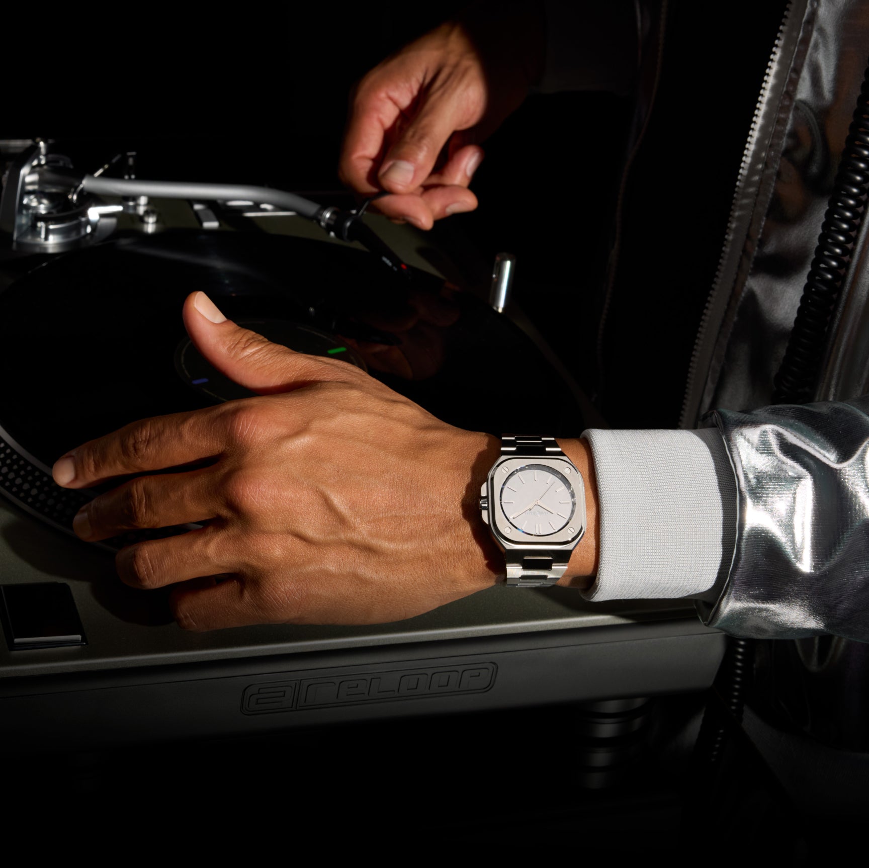 Vero e proprio specchio dai riflessi cangianti, il BR-05 Grey Mirror Steel si distingue per un'estetica interamente metallica, in cui quadrante, indici e rehaut sembrano scolpiti in un unico blocco di acciaio lucido. Il suo design monocromatico e monoblocco, senza datario, incarna una ricerca estrema di purezza e di minimalismo.
