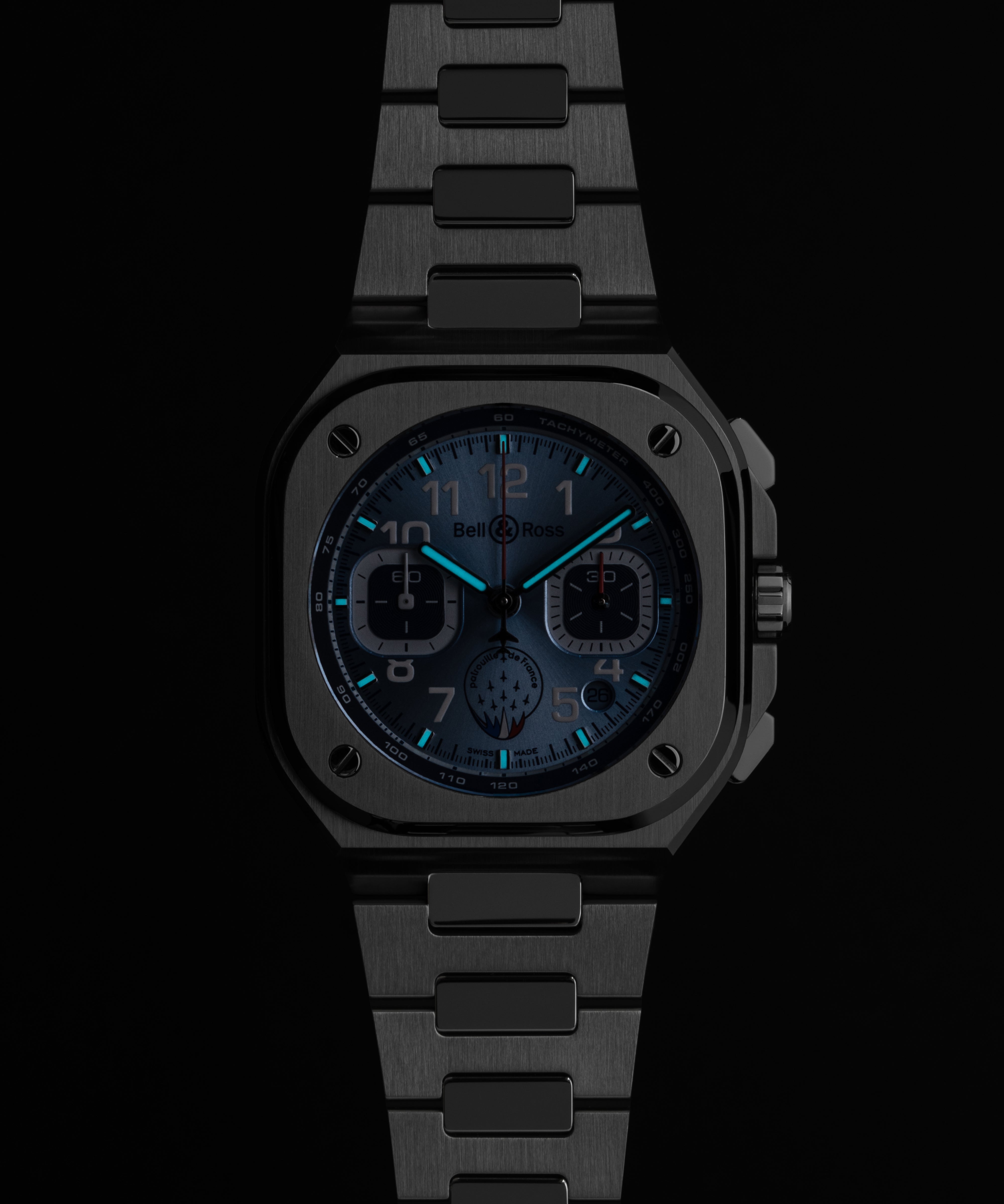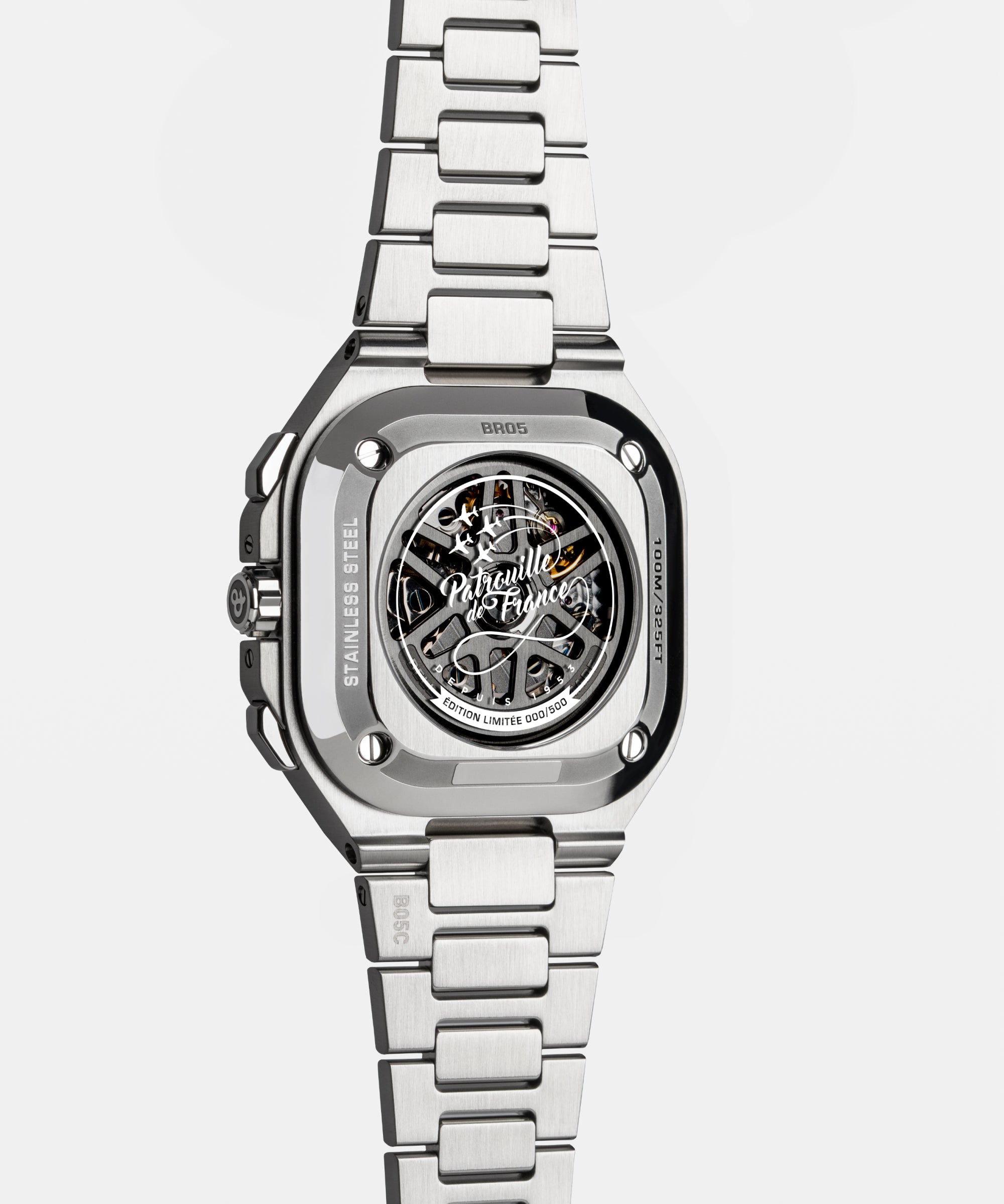 パフォーマンスと精密さの象徴であるパトルイユ・ド・フランスは、フランス空軍と宇宙軍のノウハウを体現するフランス航空の大使です。新しいBR-05クロノ パトルーユ・ド・フランスは、このエリート部隊に敬意を表し、技術の結束を讃えます。