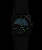 2023 年にプロポーションを刷新した象徴的な BR-03 シリーズは、このたび四角形の中に特徴的な円をあしらったデザインで 41 mm ケースに収められました。キャリバー BR.CAL-327 を搭載した BR-03 Horizon は、54 時間のパワーリザーブを備えています。