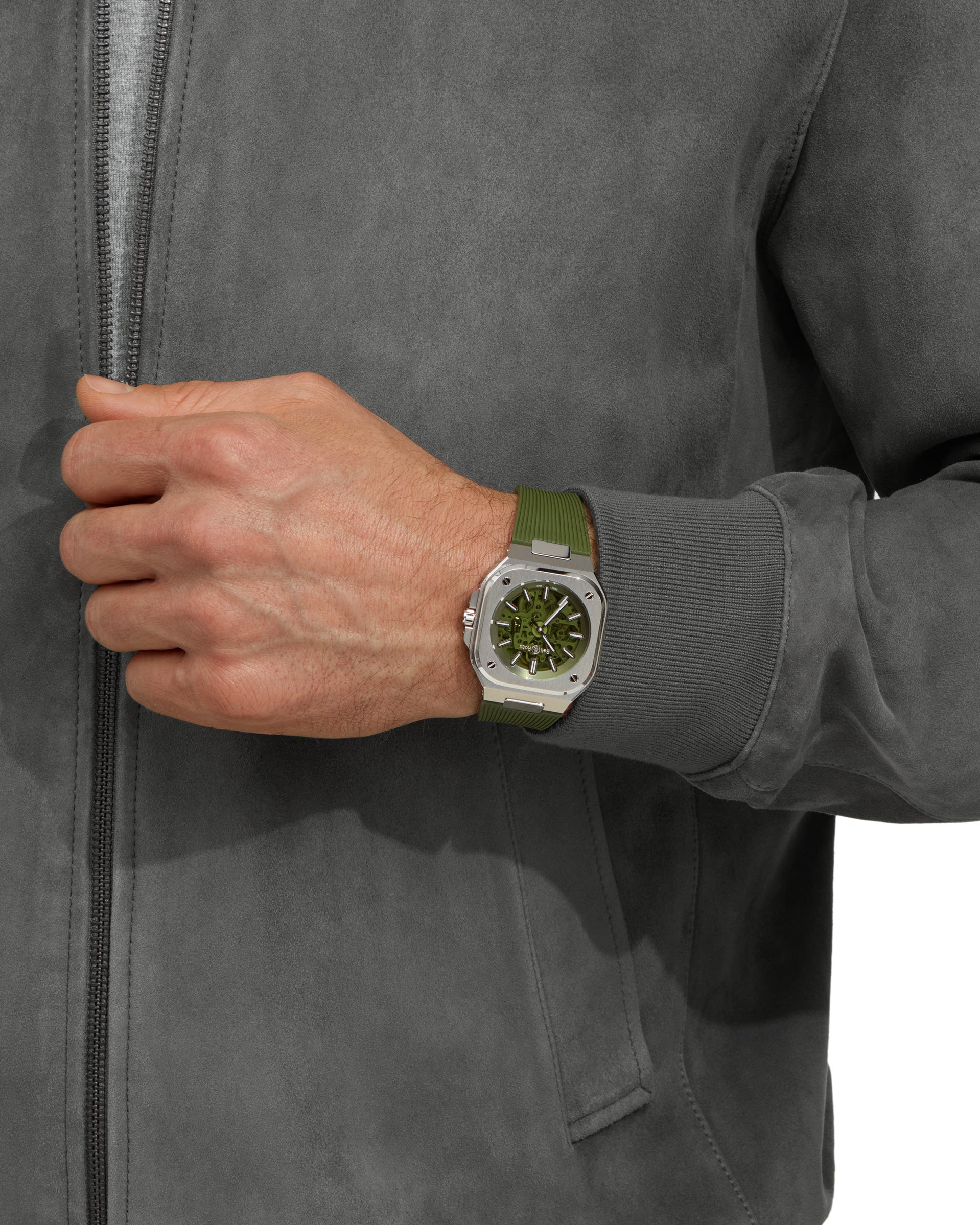 BR-05의 일체형 디자인은 고유한 개성을 드러냅니다. Bell & Ross의 크리에이티브 디렉터이자 공동 창립자인 브루노 벨라미치(Bruno Belamich)는 "브랜드의 DNA와 일맥상통하는 일체형 케이스와 브레이슬릿은 첫 번째 링크가 케이스의 일부를 형성하는 새로운 차원의 시계를 창조합니다. 70년대에서 영감을 받은 이 스타일은 독특하고 모던하며 그래픽적인 미학을 Bell & Ross에 선사합니다."