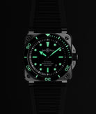 Las lunetas de los nuevos modelos BR-03 Diver están equipados con una inserción cerámica para una mayor resistencia y durabilidad, así como una nueva evolución del movimiento que aumenta la reserva de marcha a 54 horas. Una nueva tipografía y las nuevas agujas permiten una mejor legibilidad, mientras que la nueva correa se adaptará a todas las muñecas.