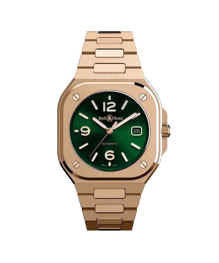 새로운 BR-05 그린 골드는 벨앤로스 BR-05 제품군과 완벽하게 어울립니다. 일체형 케이스와 브레이슬릿을 사용하여 엣지 있는 아우라가 있는 깨끗하고 스타일리시한 디자인이 탄생되었습니다.