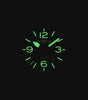 Le graphisme épuré, la couleur du cadran, les grands chiffres, la forme des aiguilles et le revêtement photoluminescent permettent une lecture immédiate du temps de jour comme de nuit.