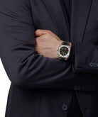 錶殼 : 寬40毫米。緞面打磨及拋光不鏽鋼。旋入式錶冠。錶冠護肩。藍寶石水晶錶殼底蓋,360度自動盤。