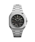The BR 05 SKELETON NIGHTLUM is in keeping with a graphic and design spirit thanks to its precious finishes and contemporary trim. The main characteristic of the BR 05 SKELETON timepieces is the work of skeletonization on the movement and the highlight of the beauty and sophistication of the fine mechanics. Often used in the Haute Horlogerie landscape, the skeleton technique magnifies the mechanism by softly carving away all but the bare minimum of the metal. The result is a combination of both resistance and extreme lightness. Pushing the challenge of transparency to a climax, the open-worked dial forms a clear window through which the movement can be admired.