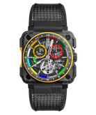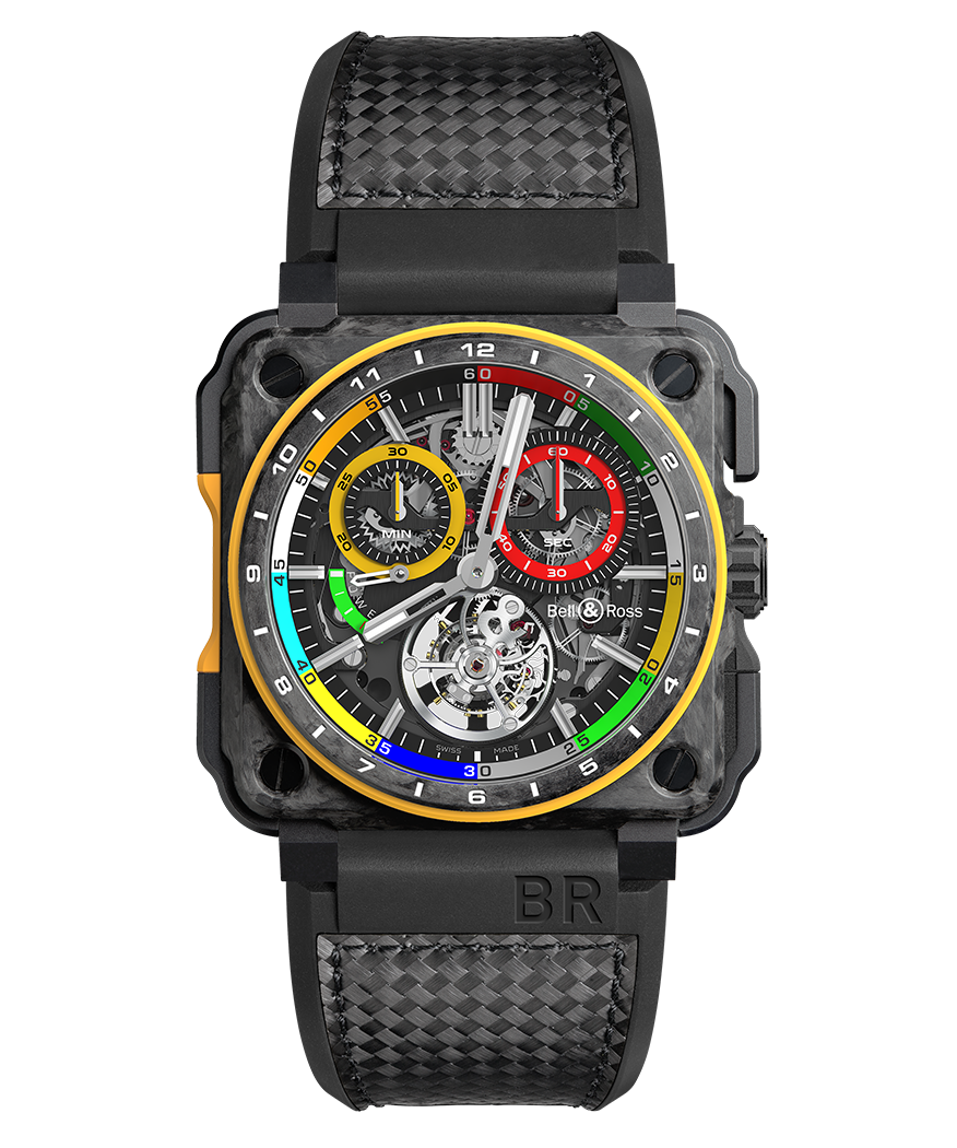機芯 : BR-CAL.283. 手動上鍊飛行陀飛輪。單按鈕導柱輪計時。282個零件、35顆寶石軸承,每小時振動21,600次。4天動力儲存。