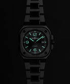 黑色會改變我們對大小的感知。為了抵消這種光學效應並突顯腕錶給人的視覺衝擊感,Bell & Ross創意總監兼聯合創始人Bruno Belamich將尺寸稍微加大,從而創造出首款採用41毫米錶殼的BR-05自動上鍊腕錶。