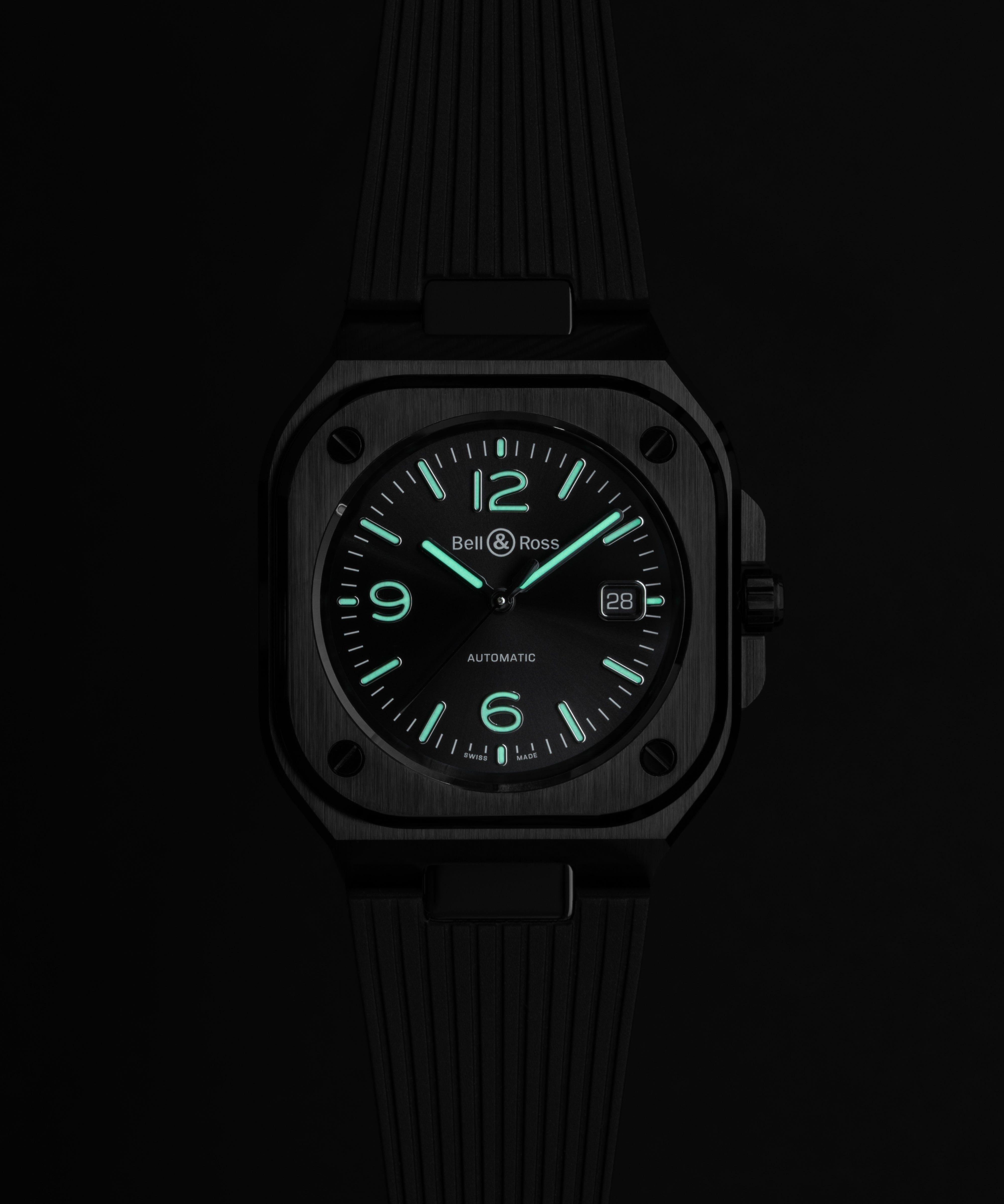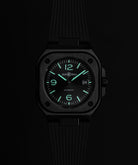 黑色會改變我們對大小的感知。為了抵消這種光學效應並突顯腕錶給人的視覺衝擊感,Bell & Ross創意總監兼聯合創始人Bruno Belamich將尺寸稍微加大,從而創造出首款採用41毫米錶殼的BR-05自動上鍊腕錶。
