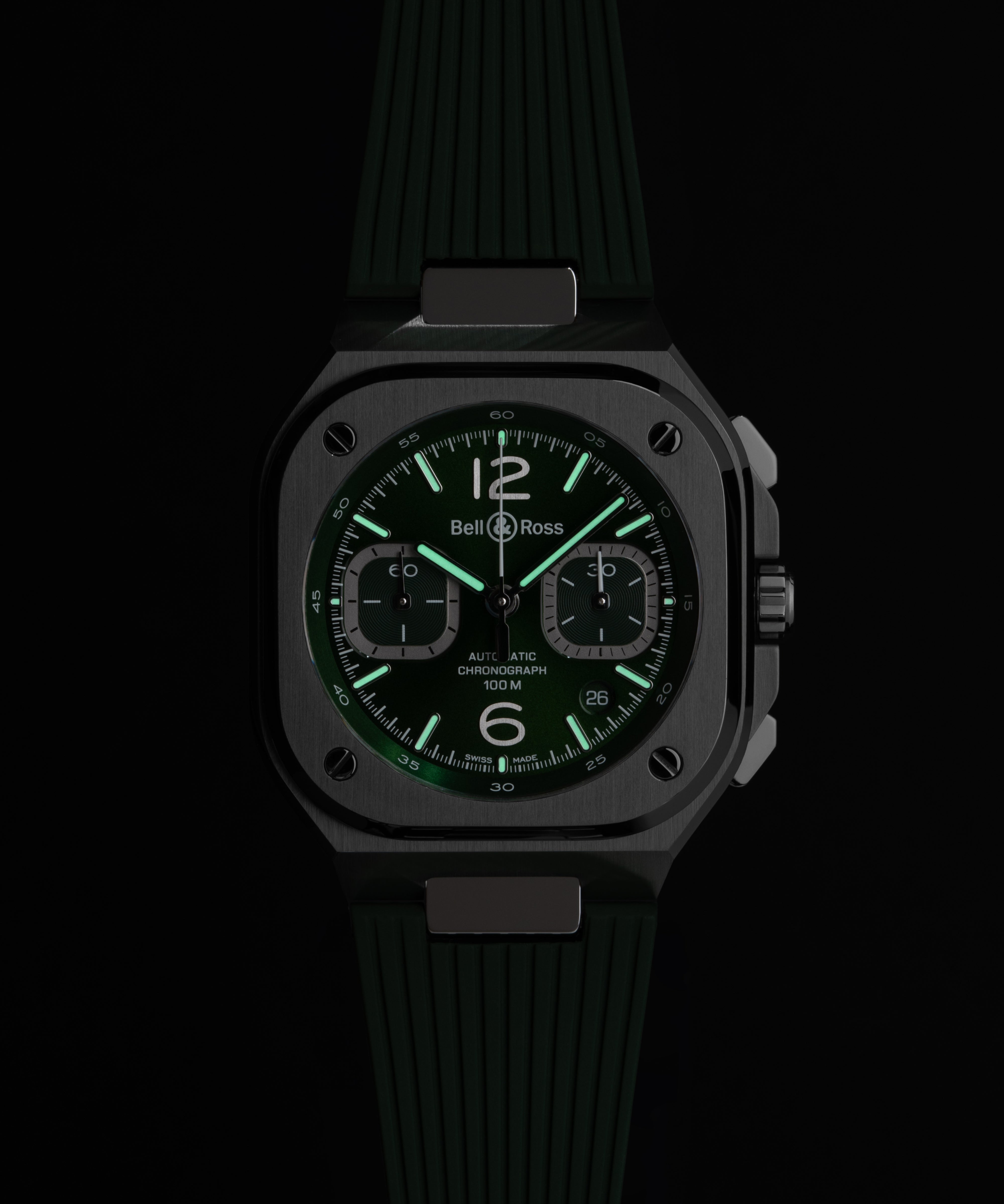 Bell & Ross的BR-05計時碼錶以雕塑般的陽剛線條與時尚且充滿自信魅力的樣貌著稱,如今更推出深綠色款式。