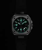 BR-05系列的錶殼及錶帶一氣呵成,方形 鋼錶殼與錶盤深具Bell & Ross追求的建 築線條美,鏈帶靈活柔順,可與黑色橡膠 帶媲美,鏈節結構弧度恰到好處,佩戴舒 適貼服。 精鋼錶殼散發都市活力動感,配以兩地時 間顯示,將都市時尚與出門旅遊的興致巧 妙結合,而鋼材又與飛機庫的混凝土、金 屬、對比質感、亮白燈光與圖形符號的工 業風格緊扣。 一體式整合線條硬朗佩戴舒適,修飾打磨 一絲不苟,令BR-05系列成為都市生活時尚 必備元素。