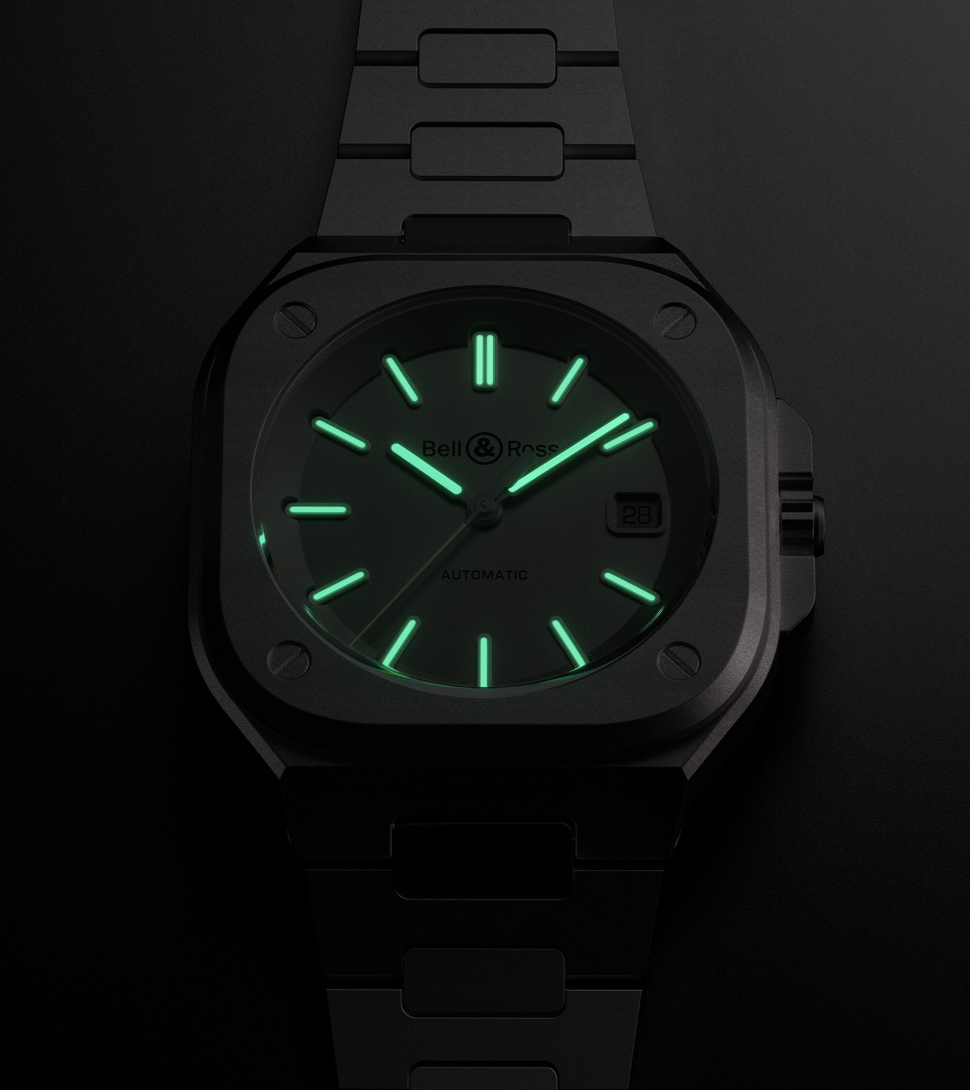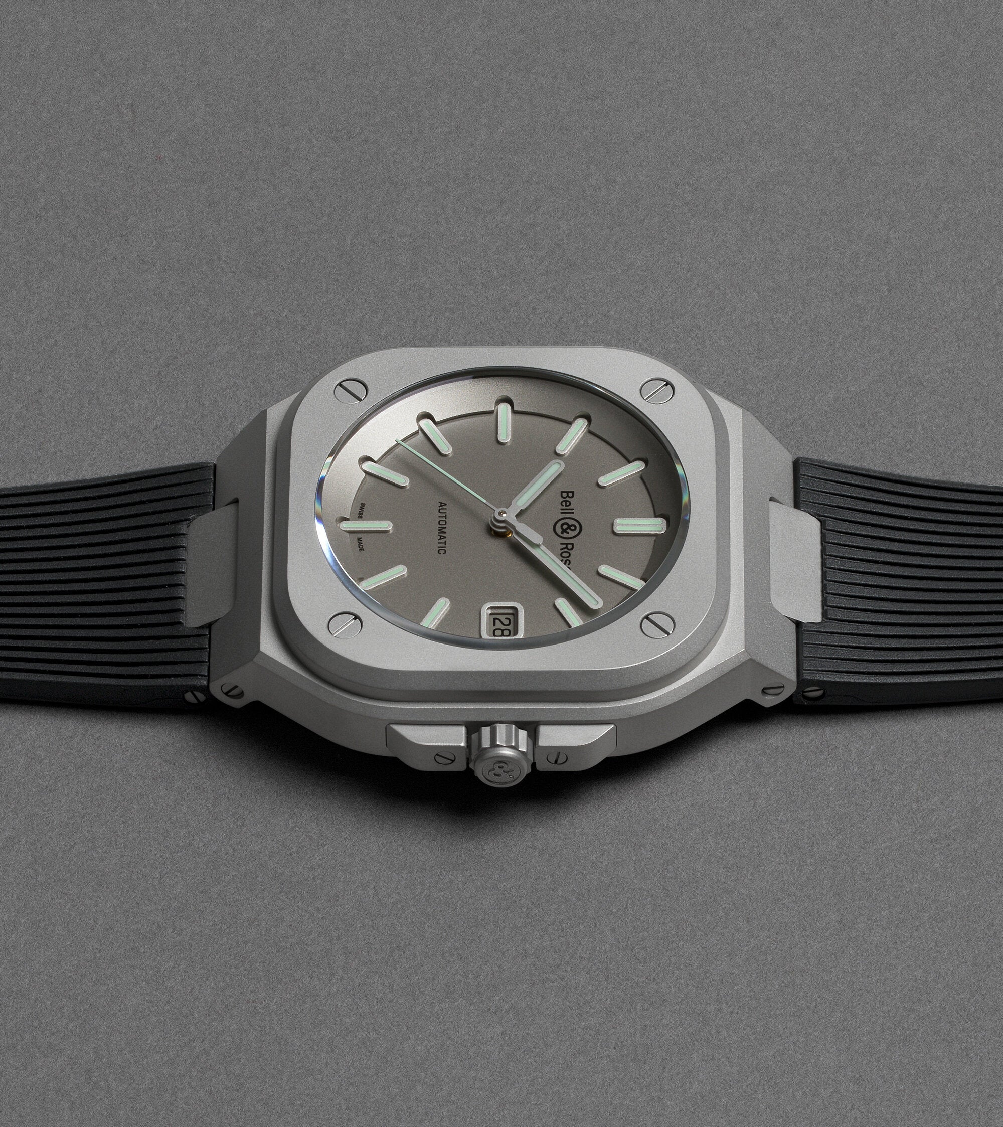 BR 05 Horolum 的特質脫胎自水泥礦物質感及當代建築的簡潔風格,加上極佳的夜光性能,是日夜間穿梭都市的活躍人士的時計佳選。 BR 05 Horolum限量250只,只限於全球指定15間Bell & Ross專門店發售。