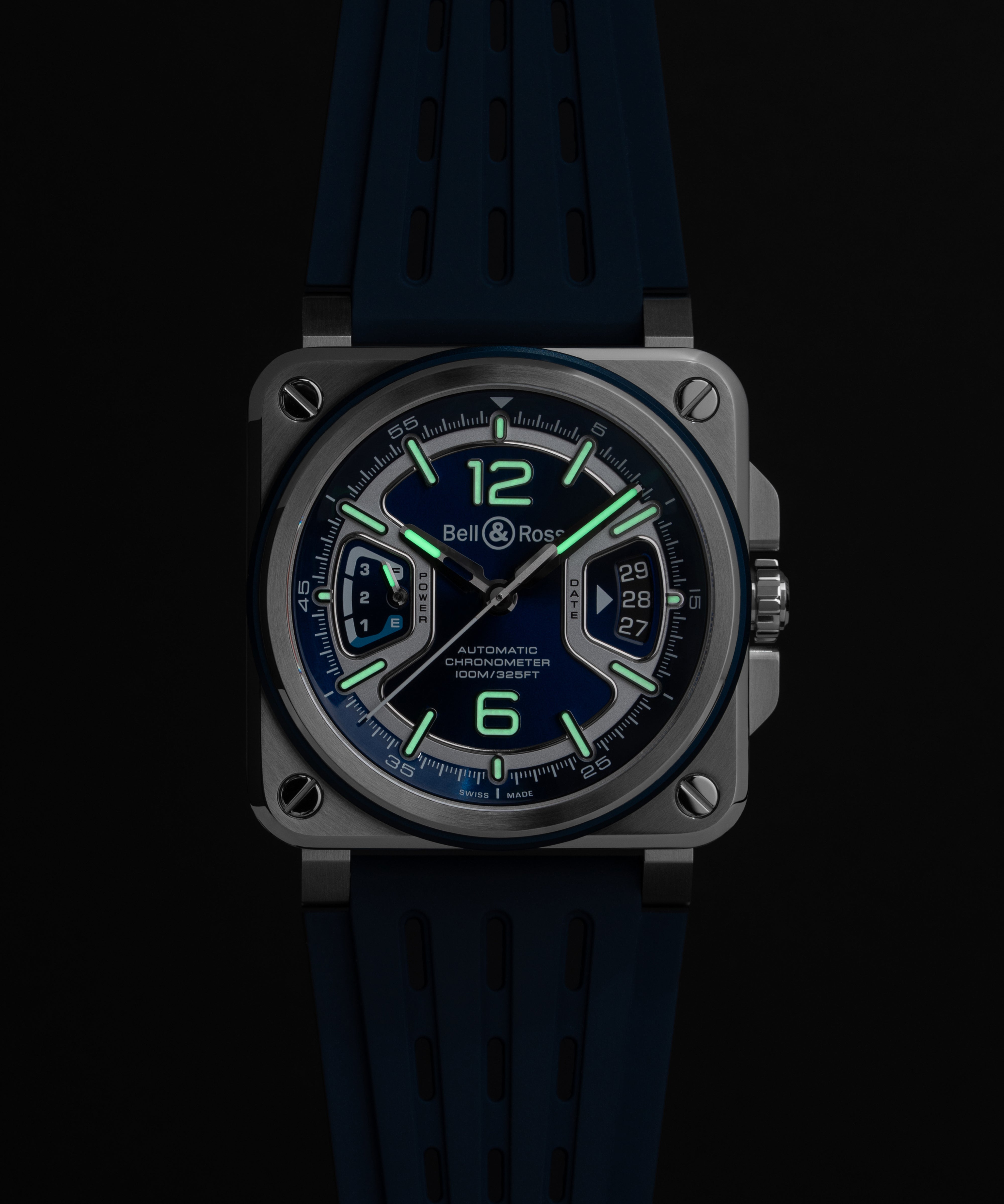 BR-X3將精湛工藝與卓越性能合而為一,41毫米錶殼內搭載品牌自製的自動上鍊機芯BR-CAL.323。腕錶經瑞士官方天文台(COSC)認證,具備70小時動力儲存,並享有5年保固。