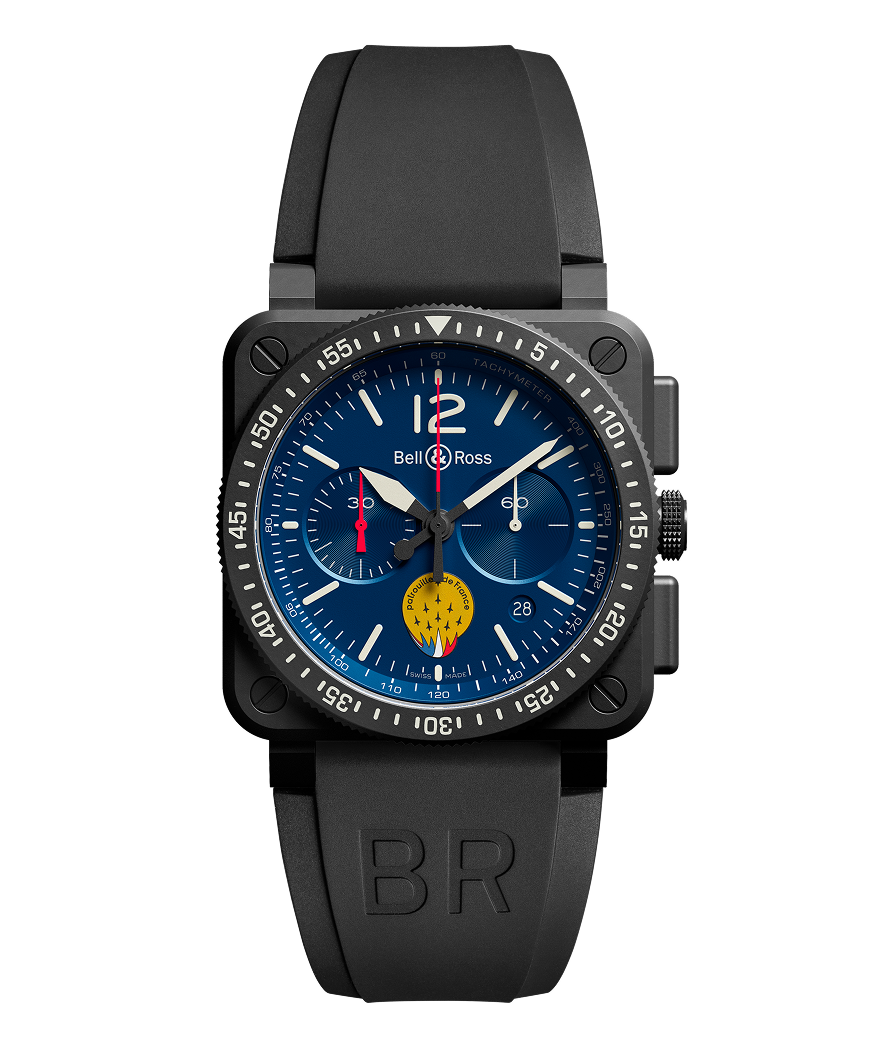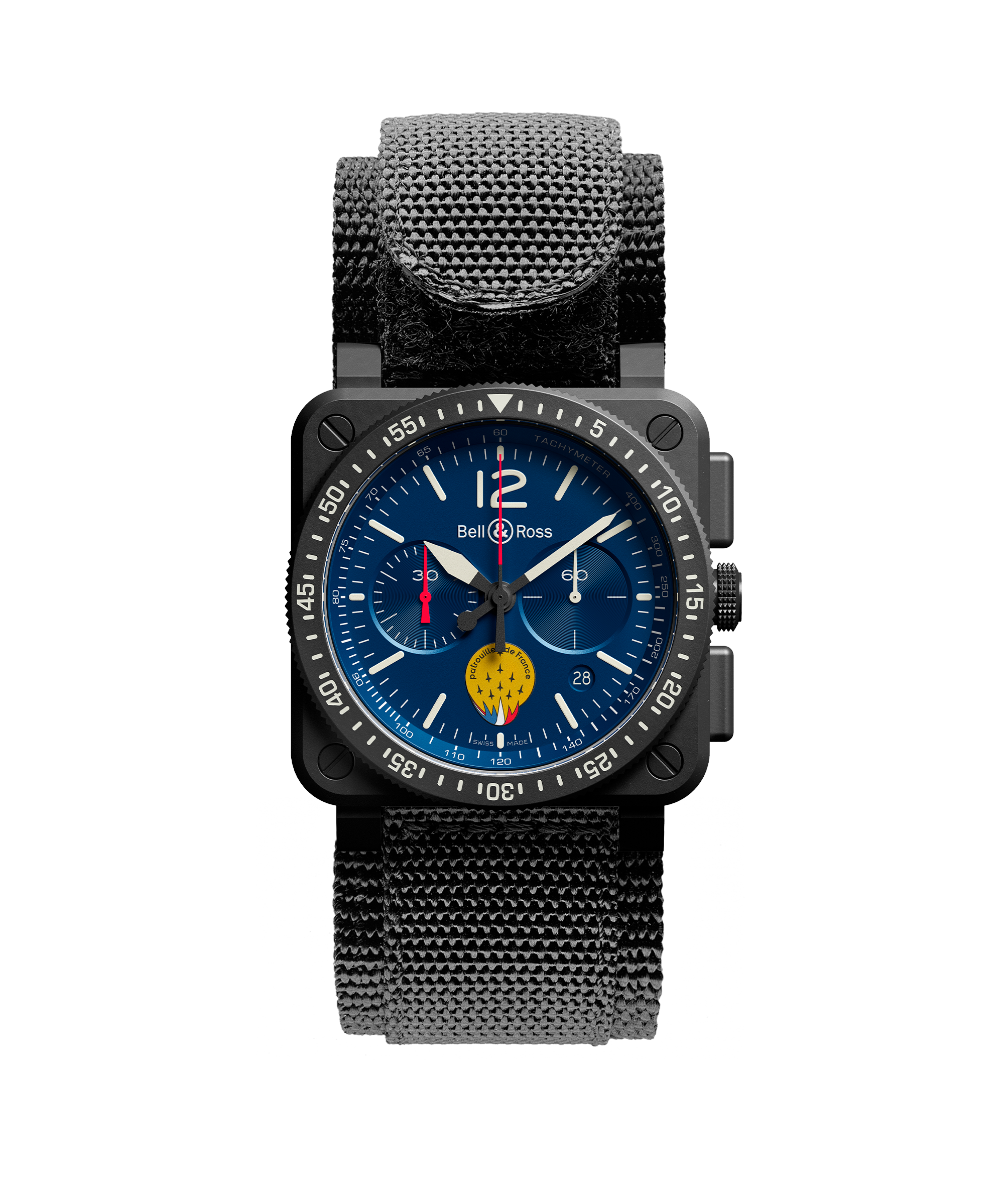 Die Anforderungen der Streitkräfte und die spezifischen Anforderungen haben die Hersteller dazu gebracht, in Bezug auf Zuverlässigkeit, Ablesbarkeit und Funktionalität noch weiter zu gehen. Jeder Parameter - Gehäusedurchmesser, Sonderfunktionen, Wasserdichtigkeit, Ablesbarkeit bei Tag und Nacht, lesbare Indexe, übergroße Ziffern, Präzision, Autonomie, Stoß- und Temperaturfestigkeit, antimagnetische Gehäuse, drehbare Lünetten - wird zu einem Schlüsselfaktor, wenn eine militärische Institution eine Uhr auswählt. Das Leben als militärischer oder ziviler Pilot ist von der Zeit geprägt. Bei Flugvorführungen bewegen sich die Piloten mit Geschwindigkeiten zwischen 300 und 800 Stundenkilometern und sind nur zwei bis drei Meter voneinander entfernt. Bei diesen Geschwindigkeiten kann der kleinste Fehler tödlich sein. Jede Sekunde ist für die Piloten entscheidend. Die Zeit ist ein entscheidender Faktor, damit die Manöver fehlerfrei und sicher ausgeführt werden können. Ihre Uhr ist das unverzichtbare Werkzeug, um diese millimetergenaue Zeit zu steuern und zu beherrschen. Bell & Ross arbeitete eng mit den Piloten zusammen und entwarf einen Chronographen, der perfekt auf ihre operativen Bedürfnisse abgestimmt ist: die BR 03-94 PATROUILLE DE FRANCE.