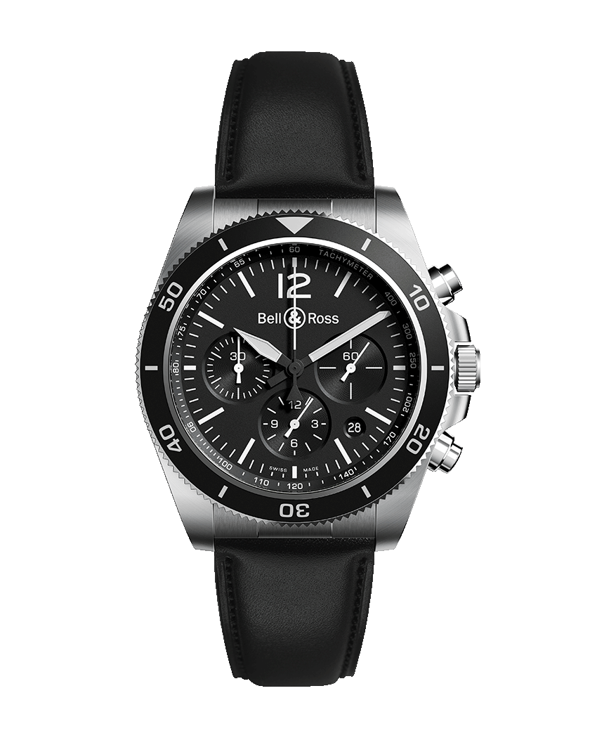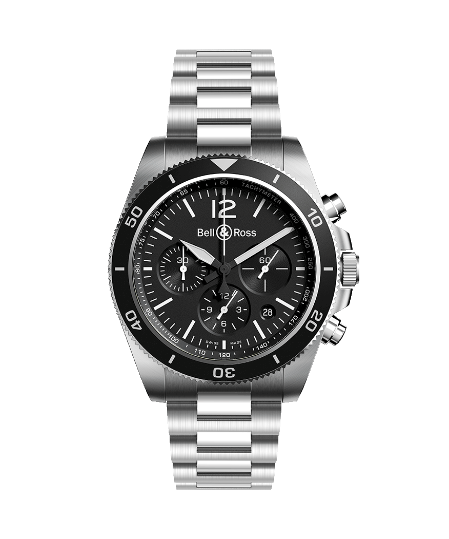 Case : Diameter 43 mm. Polished-satin steel. Bidirectional rotating steel bezel with black anodized aluminum ring graduated to 60 minutes. Screw-down crown. Sapphire crystal case back.