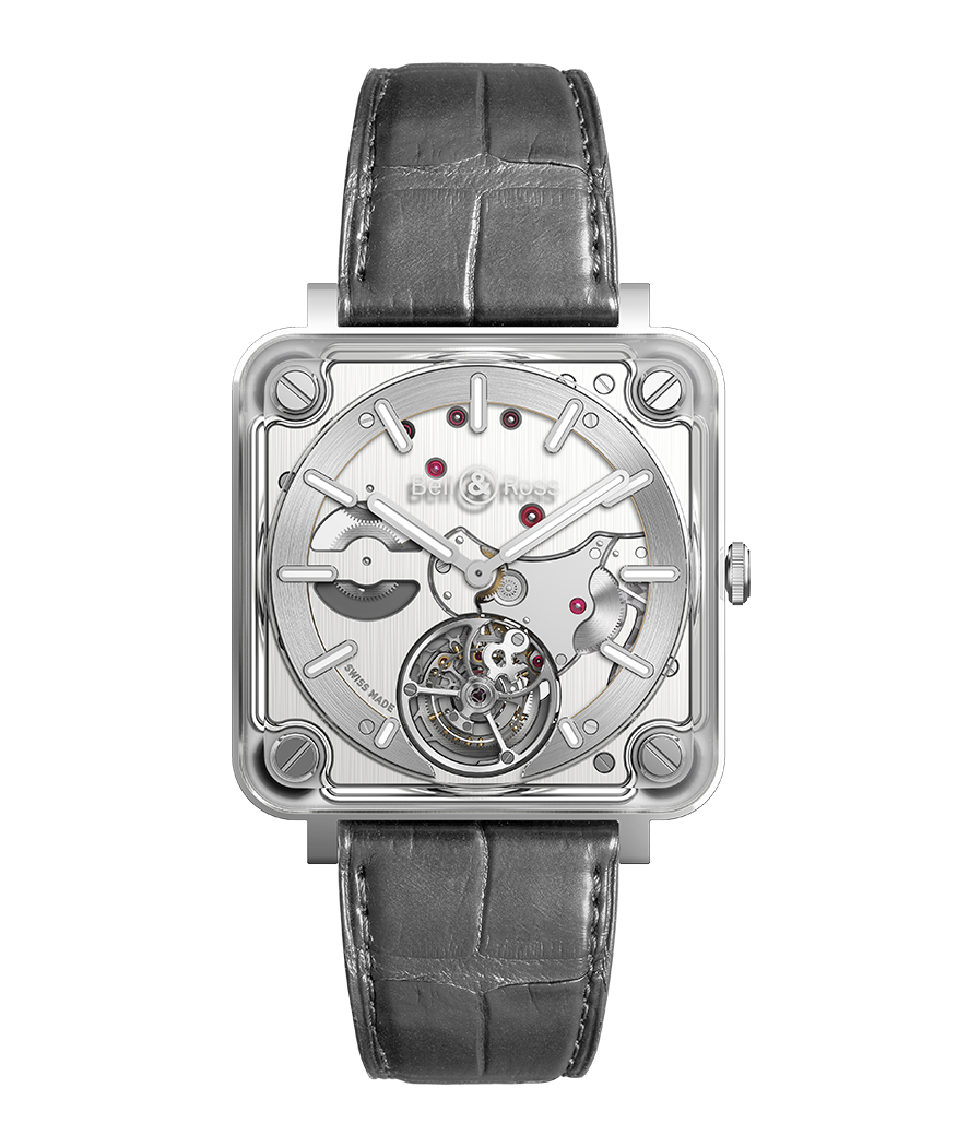 BR‑X2 的設計理念是將機芯直接佩戴於手腕上。方形超薄自製機芯 BR-CAL.380 完全暴露於視線之中,夾於兩片藍寶石玻璃之間,兩側由一條單件精密加工的鋼帶連接固定。