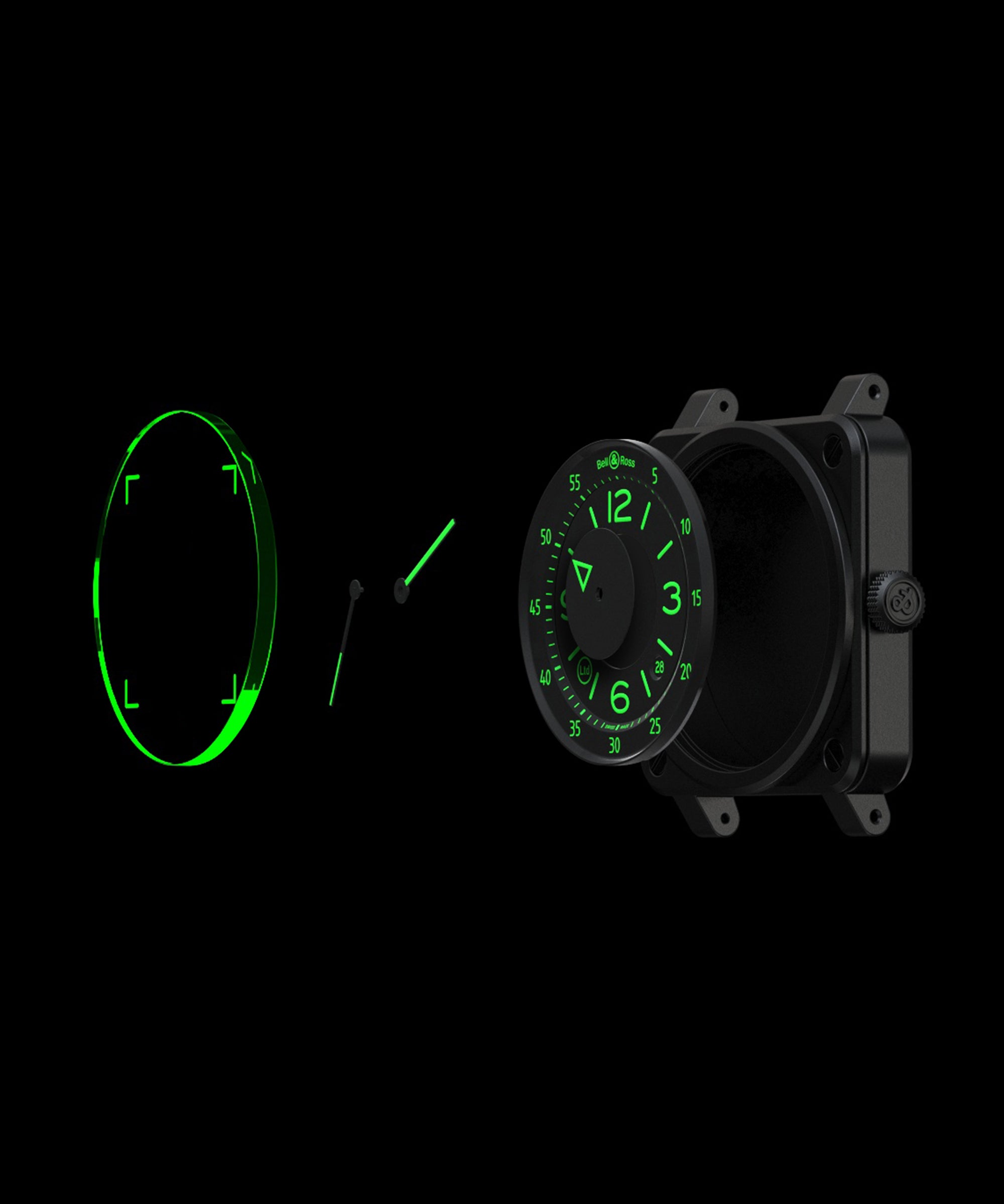 Vetro : Zaffiro trattato antiriflesso verde. Quattro squadre con trattamento Super-LumiNova® verde.
