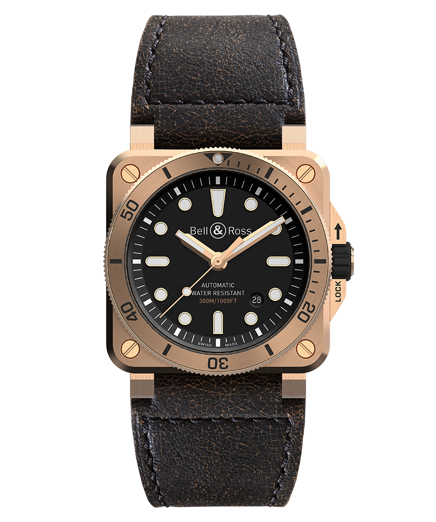 Case : Width 42 mm. Polished-satin CUSN8 bronze. Unidirectional rotating bezel graduated to 60 minutes in solid bronze.
